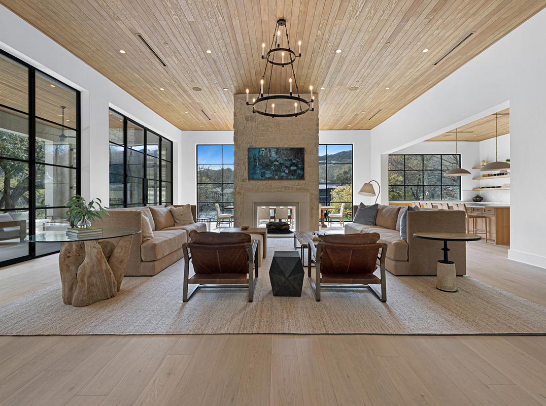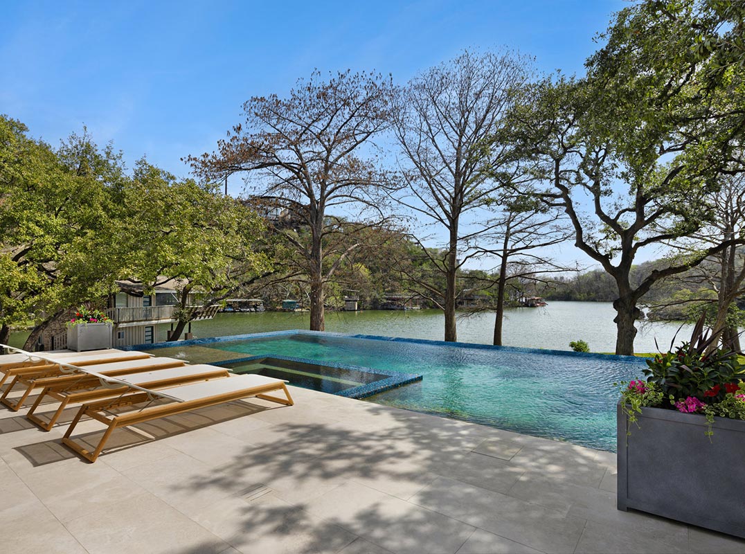 The centerpiece is a newly built 8,000 square foot French Provincial estate gently placed by the lakeshore surrounded by nature, sheltered by the canopy of mature trees, adorned by curated landscaping, and enveloped by a hand placed stone bulkhead. A broad veranda and a negative edge pool scape sets up outdoor entertaining with enviable privacy. Inside, first impressions reveal an open plan great room with central, two-sided fireplace, voluminous floor-to-ceiling walls of glass, an exhibition kitchen, and intimate views of Lake Austin from every vantage point. A primary bedroom suite boasts an expansive, spa-like bathroom and ample closet space while four additional bedrooms are served by ensuite bathrooms, and a second story bonus room and billiards hall and bar serve up a life better lived for family or corporate retreats alike.