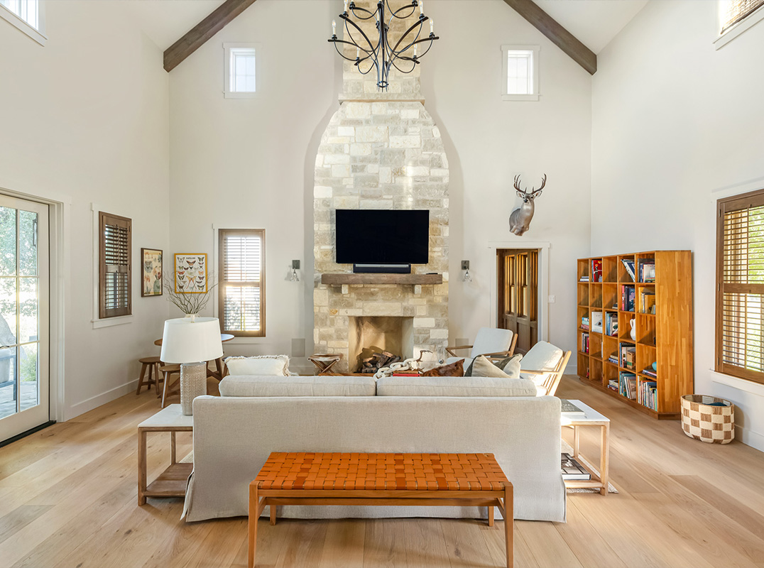 Built by Deven Baughn of DBM Custom Homes in Fredericksburg, the residence reflects a commitment to enduring craftsmanship and architectural integrity, marrying authentic materials with refined simplicity.