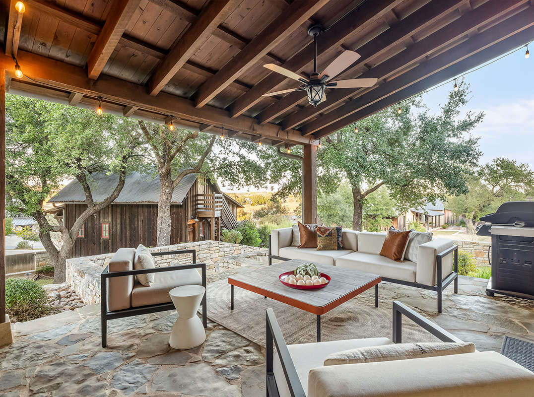 Historically inspired, 65 Riviera Cove- part of the Overlook Cabins at Boot Ranch- reflects the craftsmanship and character of 19th-century Hill Country residences.