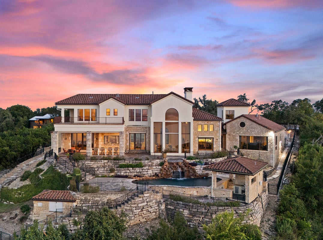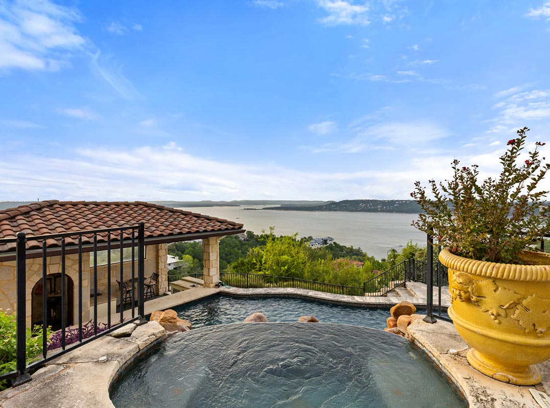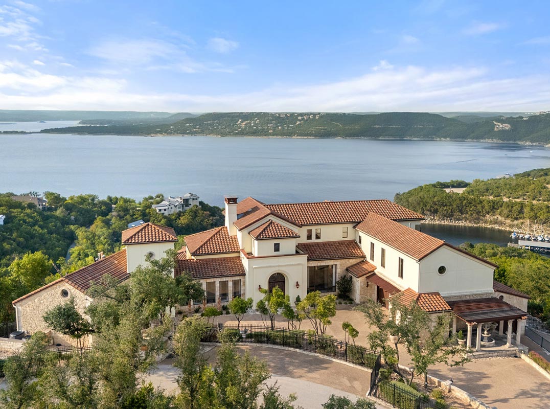 Imagine waking up to a wall of glass overlooking Lake Travis, sunlight spilling across hand-laid stone floors, and the quiet stillness of 1.31 private acres. Welcome to 12600 Lyndon Dr — a true European Villa–inspired estate where every detail is designed to make this home a precious retreat. Past the gated entrance, this 6,706 sq. ft. masterpiece reveals itself slowly; tucked into the hillside for privacy yet positioned to capture some of the very best views of Lake Travis. Step inside and you are greeted by a dramatic rotunda with hand-painted ceilings and intricate mosaic tile — a breathtaking first impression that sets the tone for the rest of the home. Vaulted ceilings with heavy beams, custom stonework, and warm stucco walls make the interiors feel both grand yet warm and welcoming. This is a home built for living beautifully at any phase of life. Two separate living rooms feature floor-to-ceiling windows that frame panoramic views of the lake and hills. One living space offers a cozy experience framed by a warm fireplace, while the other opens seamlessly to the updated chef’s kitchen with top-tier appliances - a place to gather while dinner simmers. The formal dining room is perfect for memorable gatherings under the glow of candlelight, and the dedicated office, complete with wet bar and gas fireplace, is ideal for working or unwinding with a nightcap.