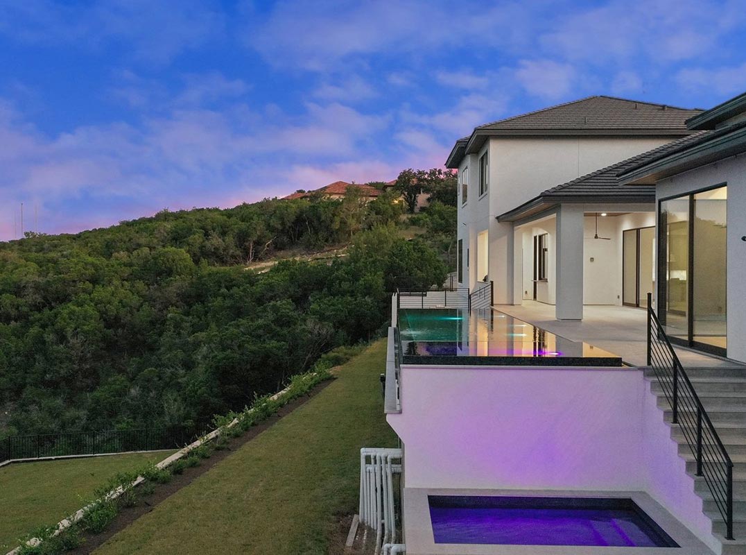 Welcome to SkyView Estate, an extraordinary modern retreat set on an expansive 10.39-acre private sanctuary along the prestigious City Park Road in Austin, Texas. Expertly crafted with meticulous attention to detail, this luxury home harmoniously blends contemporary architecture with the natural beauty of the Texas Hill Country, overlooking the breathtaking vistas of Balcones Preserve and the iconic Pennybacker Bridge. Designed for the discerning homeowner who values privacy, elegance, and unparalleled comfort, SkyView Estate invites you through a dramatic architectural entrance leading into voluminous interiors marked by soaring ceilings and European planked wood flooring. Each room has been thoughtfully curated to capture natural light and frame picturesque views, seamlessly merging indoor luxury with outdoor serenity. At the heart of this magnificent home lies a state-of-the-art gourmet kitchen, a culinary enthusiast's dream. Equipped with top-of-the-line Wolf appliances, Sub-Zero refrigeration, and dual wine refrigerators, the kitchen is adorned with exquisite Calcutta gold countertops—sure to impress guests at every gathering. The private primary suite offers a serene retreat featuring a two-sided fireplace, an oversized steam shower, and a lavish, two-story designer closet. Additional ensuite bedrooms, complete with luxurious Waterworks finishes, provide ample space and privacy for family and guests. The well-appointed study adjacent to the primary suite further enhances the estate's sophistication. Outside, immerse yourself in exceptional outdoor living. A spectacular 75-foot Lautner edge infinity pool and spa serve as the centerpiece of lushly terraced grounds, creating the ideal setting for elegant entertaining or tranquil relaxation. The landscape masterfully blends manicured spaces with the natural, rugged beauty unique to Austin’s prestigious Hill Country. Perfectly positioned near excellent Austin ISD schools including Highland Park Elementary and McCallum High, and conveniently close to Downtown Austin and upscale amenities, SkyView Estate offers an unmatched luxury lifestyle in one of Austin's most sought-after locations.