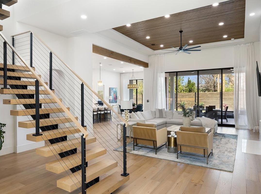 From the moment you enter, European wide-plank oak floors, soaring ceilings, expansive windows, and a floating steel staircase establish a refined, elegant tone. A rare and highly flexible floor plan provides three bedrooms and three full baths on the main level—ideal for guests, multigenerational living, fitness or home office needs.