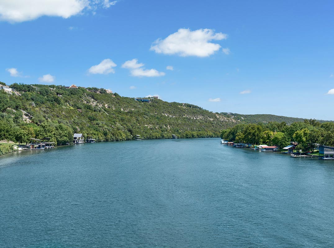 Lake Austin, formed by the damming of the Colorado River, stretches approximately 21 miles through the western edge of Austin. Its crystal, consistent water levels, wind through lush landscapes, offering a breathtaking backdrop of rolling hills and verdant shores. This natural splendor not only provides a serene environment but also fosters a deep connection with nature for those who call its shores home. A