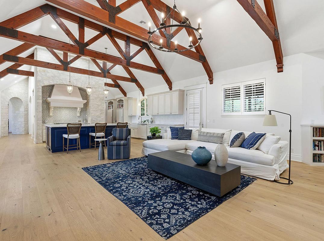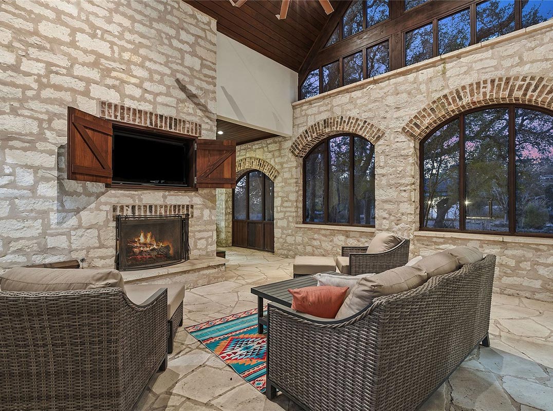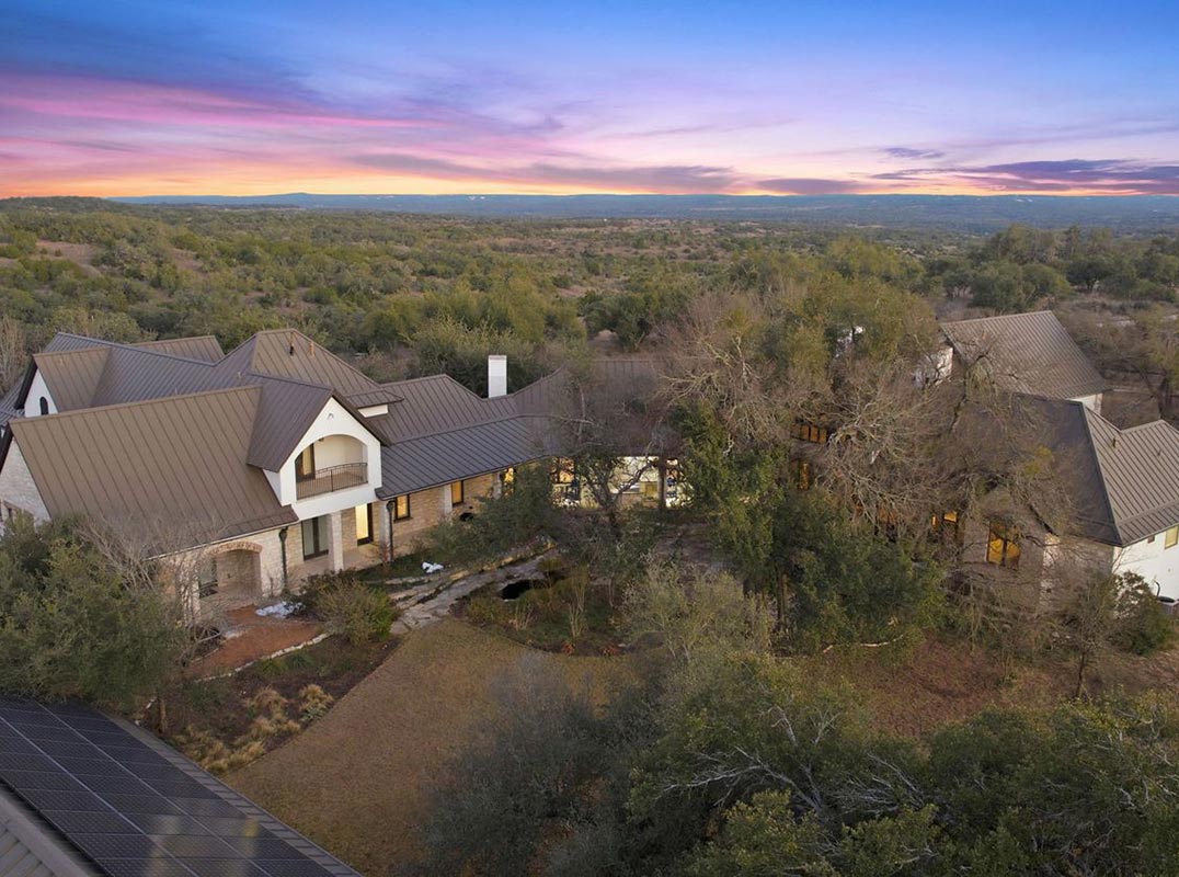 Privately positioned on 26 unrestricted acres in the heart of Bee Cave, this rare Hill Country estate delivers space, privacy, and refined design without sacrificing proximity to modern conveniences. A gated entry and drive lead to an expansive residence and grounds that feel worlds away from the city, yet remain centrally located. The main home spans approximately 6,745 square feet and blends classic architectural influence with elevated, contemporary finishes. Natural materials, including wide-plank white oak floors, stone accents, and exposed beams, create a cohesive warmth throughout, while the scale of the rooms allows for both grand entertaining and everyday comfort. The chef’s kitchen serves as a true centerpiece, outfitted with professional-grade appliances, generous prep space, a statement island, and thoughtfully integrated beverage and wine storage. Designed with flexibility in mind, the layout includes multiple living areas, private suites, and a separate wing with its own sitting space and kitchen, ideal for guests, multigenerational living, or extended stays. Outdoors, the estate unfolds into a serene landscape featuring a fishing pond, curated gardens, and calming water elements. An impressive open-air pavilion with a full outdoor kitchen, bathroom, and automated shades creates a natural gathering space for hosting year-round. A six-car garage with interior access, porte-cochere, and ample additional parking complete the property. With unrestricted land, refined updates, and a central Bee Cave location, this estate presents a rare opportunity to enjoy Hill Country living at scale without compromise.