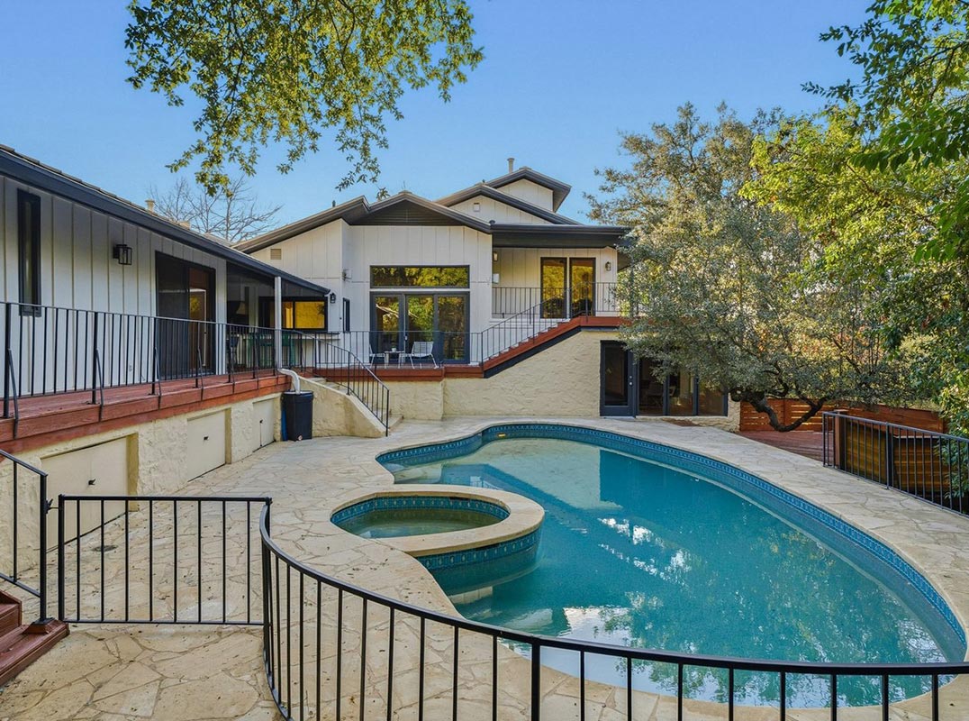 iving like a single story, this Tarrytown home is quietly tucked away yet ideally positioned near all the conveniences of the neighborhood. Enjoy a spacious, thoughtfully designed kitchen featuring a breakfast bar, six-burner Wolf gas cooktop, oven and microwave, two Bosch dishwashers, a built-in Miele espresso machine, Sub-Zero refrigerator and a generous walk-in pantry. The kitchen opens to a cozy breakfast nook with direct access to the newly painted deck, while a convenient pass-through window to the outdoor grill bar creates a seamless connection between indoor and outdoor entertaining spaces. The bedroom wing is privately positioned on one level, offering four well-appointed bedrooms. The primary suite enjoys peaceful pool views and opens to the back deck, creating a quiet retreat. All four bathrooms throughout the home have been recently updated, delivering a cohesive, refreshed feel with contemporary finishes. A dedicated study near the entry provides flexible space for working from home or can be a 5th bedroom. On the lower level, a warm and inviting family room features a stone fireplace, wet bar, and direct access to the backyard, a great space for movie nights, game days, or hosting friends. Outdoors, the property truly shines, with a beautiful pool surrounded by multiple decks, lounging areas, and a covered outdoor dining space complete with built-in grilling and prep areas, designed for effortless entertaining year-round. Ideally located within walking distance to Casis Elementary and Casis Village, and just minutes from Mozart’s, Hula Hut, Quince, and downtown Austin, this home presents a rare opportunity to enjoy a thoughtfully updated contemporary residence in one of Tarrytown’s most desirable settings.