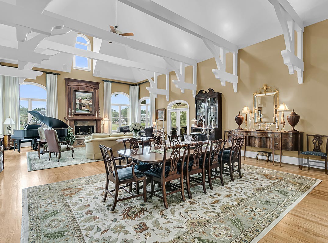 The main level features an oversized open concept living room and dining room, a home office perfect for the work at home couple, and a sun-drenched sunroom/porch with marsh and creek views. Speciality window coverings allow for the sunroom to be used year round with the windows open or closed. The gourmet kitchen is functional and inviting with views of Toomer Creek from every window and features a large kitchen island, stainless steel Wolf and SubZero appliances, a copper sink, a built-in TV, an eat-in area, and a cozy area to watch TV - with outdoor access to the deck, the outdoor kitchen, the backyard, the pool and the dock. The butler's pantry, which features a sink, a second dishwasher, and a wine fridge, also serves as the laundry room with plenty of extra storage, including pull out drawers in the cabinets.