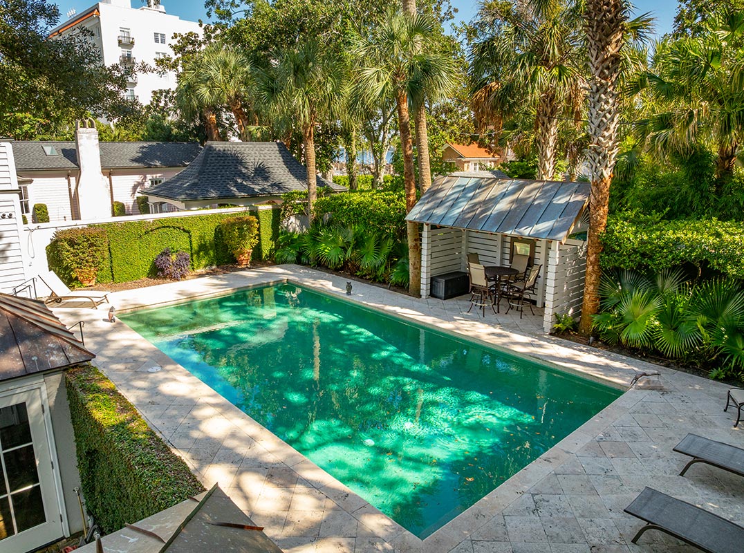 Beautifully sited on a double wide lot within historic South of Broad. This recently restored double-piazza masonry home features impeccable details with fabulous modern updates, including a spacious kitchen/family space to the rear, plus an equally grand primary suite above with elevator access, marble bath finishes, and multiple closets with a separate dressing area.The generous garden offers exceptional light and space. The lot width allows for side by side gated parking and a large pool at the rear of the lush garden. Other amenities include an elevator from the parking area, and a new slate roof. 4 bedrooms, 3 full baths, and 2 half baths. 4,100 SQFT of interior space.No conservation easements have been taken on the property.