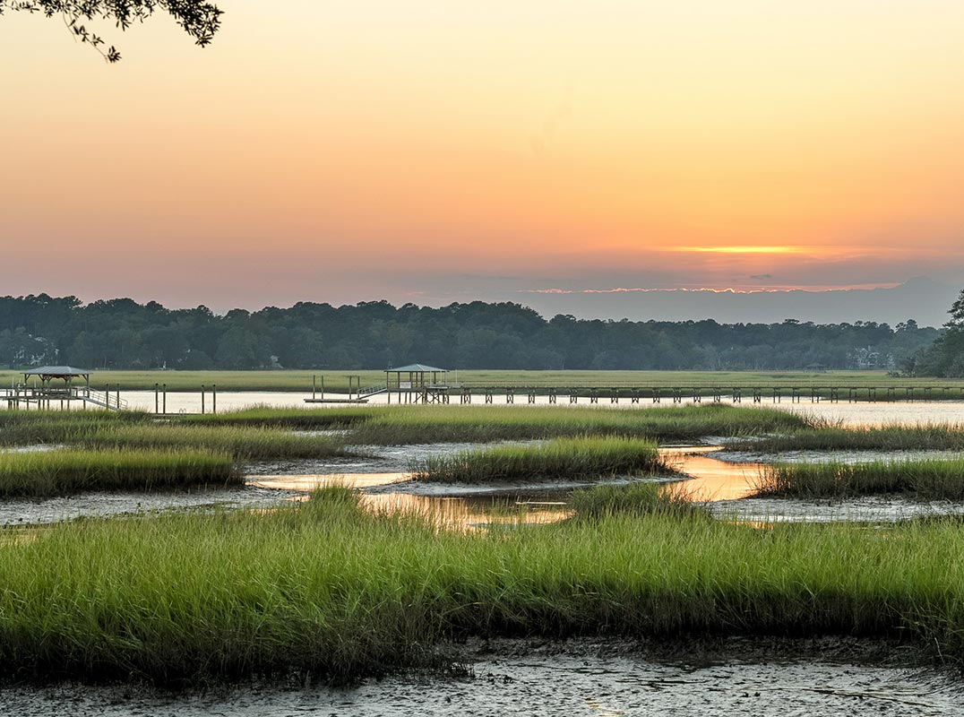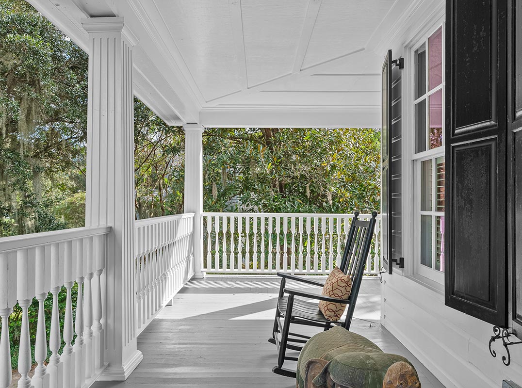 From the wide front porch, rocking chairs invite you to linger over morning coffee and enjoy the sun begin to peak through the oak trees as a new day begins. In the evening, retreat to your covered back porch to watch the gorgeous sunset as the light glimmers across the water, turning the creeks into ribbons of gold. A salty breeze whispers through the trees, carrying the faint call of a heron in flight.