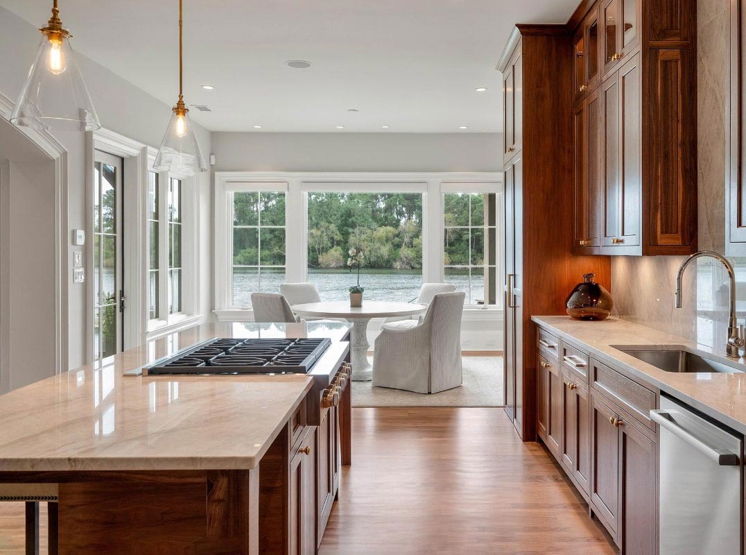 Its thoughtful layout ensures a natural flow between indoors and out, creating an ideal setting for everyday living and elegant entertaining. The main level offers both formal and casual dining, generous living spaces, and one-level living anchored by a primary suite intentionally positioned to enjoy abundant natural light and serene views over Lake Sharon.
