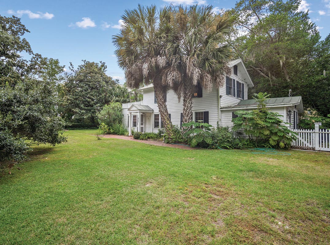 This 4,450 sq ft main residence features 4 spacious bedrooms and 3.5 baths, including double parlors adorned with elaborate crown molding, multiple fireplaces, and expansive wood floors throughout. The formal living and dining rooms offer elegant spaces for entertaining, while jib windows on both deep porches ensure effortless indoor-outdoor flow and optimal southern breezes. Two-story piazzas, supported by eight full-height round columns, provide gracious outdoor living with sweeping views and unmatched charm.