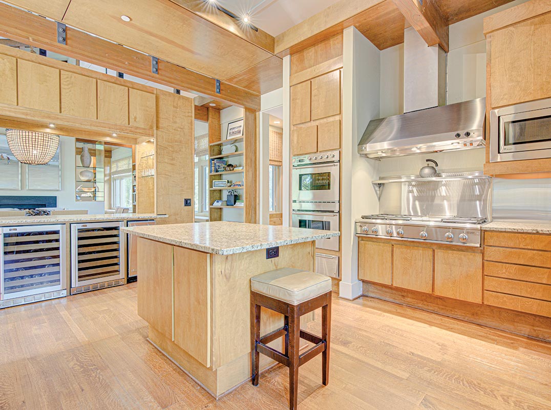 Arranged across three thoughtfully designed levels, the home maximizes both functionality and breathtaking views. The ground level provides expansive storage ideal for outdoor and recreational equipment, perfectly suited to the island's nature-centered lifestyle. The second level features oversized, light-filled bedrooms designed as peaceful private retreats. On the upper level, the primary living spaces -- including the living room, dining area, and a versatile art studio or office that can easily be converted into a fourth bedroom -- are positioned to capture panoramic vistas of water and sky while providing an inviting setting for daily living and entertaining. The luxurious kitchen and generous entertaining spaces create the perfect environment for hosting gatherings with family and friends for years to come. Custom cabinetry in the kitchen and bathrooms features a marine-grade finish, ensuring lasting durability, color, and sheen suited for the coastal climate.
