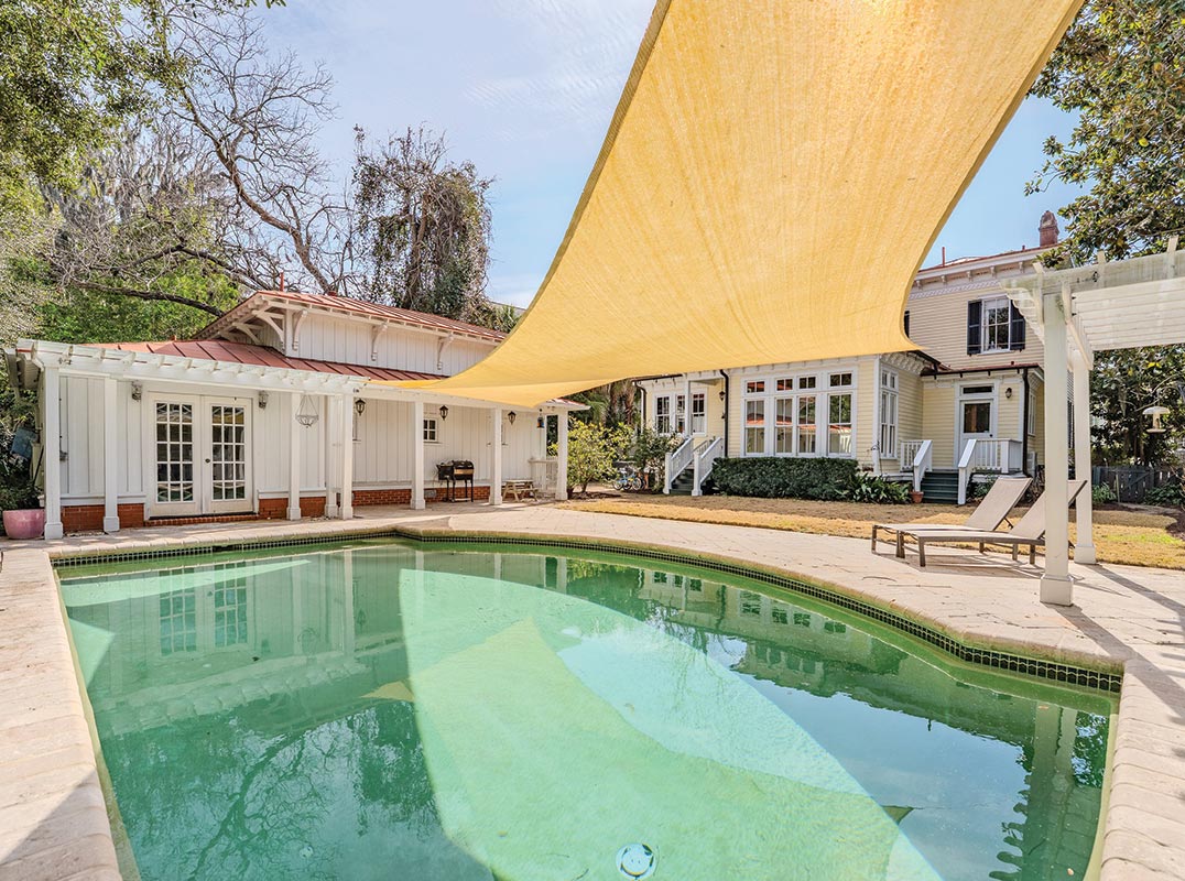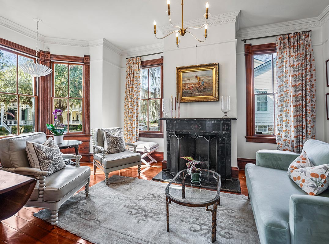 The Hattie Ford House sits on one of Beaufort's most photographed streets in the Historic Point neighborhood. Built in 1890, this Victorian Italianate home was thoughtfully renovated between 1996 and 2006. A wraparound porch sets the tone, opening to well-established gardens and a private backyard with a pool and hardscaping that feels tucked away and quiet.