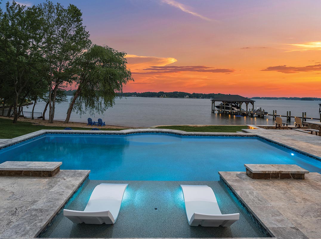 Luxury lakefront living awaits on Lake Norman. Perfectly positioned on an over-an-acre cul-de-sac lot with 295 feet of shoreline, including 100 feet of rare natural white-sand beach, this exceptional waterfront estate offers sweeping panoramic water views that stretch for miles and deliver breathtaking sunrises in the morning and historic sunsets that paint the sky in the evening. The backyard oasis, enhanced by over $1M in recent upgrades, rivals a private resort, featuring a stunning pool, expansive hardscaping, a cozy fire pit, and a beautifully constructed rock seawall—all designed to maximize the extraordinary waterfront setting. Spanning 9,434 square feet, the home offers 5 bedrooms and 5.5 baths, including two primary suites and an elevator serving all three levels, making it ideal for extended family or guests. Inside, expansive rooms, soaring ceilings, and walls of windows frame the lake from nearly every angle, filling the home with natural light and creating a seamless connection between indoor and outdoor living. Designed for both everyday living and entertaining, the chef’s kitchen features double islands, a 48” Thermador range, a Thermador wall oven with microwave, a True refrigerator, freezer, and wine refrigerator, a beverage station with beverage refrigerator, a coffee bar, and a large walk-in pantry. This extraordinary residence blends thoughtful design, modern luxury, and unmatched waterfront beauty—a rare opportunity to own one of Lake Norman’s most spectacular lakefront retreats. Conveniently located near shopping and dining. 45 minutes to Uptown Charlotte and 30 minutes to the Douglas International Airport.
