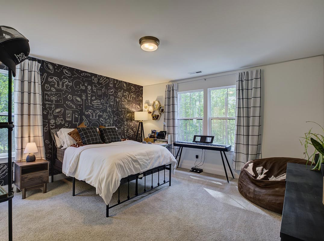 Luxury contemporary/farmhouse style at its finest. Situated on a large 1.75-acre wooded lot in the Rivers Edge community, this property is a perfect choice for those who desire a sleek, contemporary home. The custom-designed home plays with the contrasts of warm wood and dark gray paneling, making for an eye-catching entry into this home. A private glass door study sits just off the grand entry foyer. The gourmet kitchen features ample white cabinetry, an oversized kitchen island with a single-bay sink, and ample seating space. A gas cooktop with stainless steel exhaust hood, wall oven, and custom pantry make preparing meals a joy. The open dining area flows seamlessly into the great room. Just outside the dining area is the covered deck accented by a wood paneled ceiling overlooking the extended paver patio and serene wooded back yard. Truly an outdoor living paradise. The luxury primary suite has a spa-like bath with a free-standing glass-enclosed shower, dual vanities, and an ample walk-in closet. Upstairs, a second private office provides flexible space. Three spacious bedrooms and a barn door-enclosed bonus room provide plenty of space for family and guests. Bedroom 2 utilizes a hall bath, and bedrooms 3 and 4 share a Jack and Jill bath. The community of Rivers Edge borders Lake Wylie, and is situated across the street from over 200 acres of conservancy land. Enjoy the beauties of nature and modern conveniences in this one-of-a-kind home.