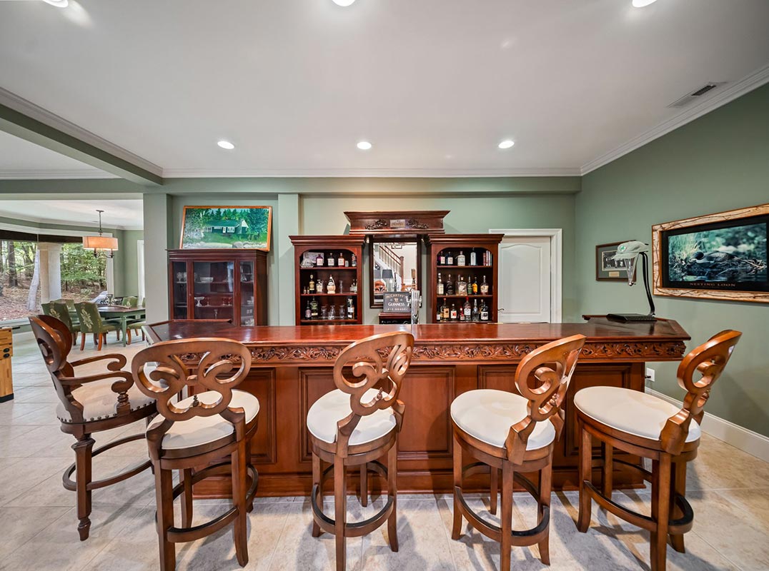 This property has been meticulously maintained and thoughtfully upgraded to showcase both beauty and functionality. All bathrooms have been professionally redesigned with today’s luxury finishes in mind, seamlessly blending modern style with timeless elegance. Throughout the home, the attention to detail is undeniable—from the custom window treatments to the sophisticated light fixtures, every choice has been curated for both style and practicality. The exterior spaces are just as impressive. Multiple verandas overlook the wooded backyard, offering plenty of space for quiet mornings, evening cocktails, or weekend entertaining. The brick paver circular drive makes a striking first impression, while lush landscaping enhances the home’s natural setting. Mature trees frame the property, providing privacy and shade, and flowering crepe myrtles welcome you home each season.