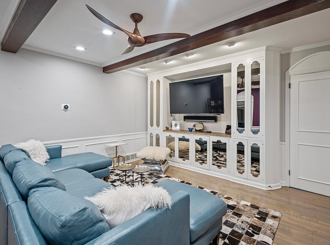 Inside, the home’s renovation honors its rich character while delivering every modern convenience. Remodeled bathrooms provide a perfect balance of high-end fixtures with period-inspired details that respect the home’s origins. One bathroom has been artfully converted into a custom barbershop, a conversation-worthy space that celebrates classic style. The kitchen and living areas embrace open, natural light, featuring restored hardwoods, modern lighting, and updated electrical and plumbing systems that bring 21st-century reliability to a historic setting. A whole-house water filtration system and tankless water heaters ensure efficiency and comfort, while a Level 2 EV charging station provides readiness for today’s electric vehicles.