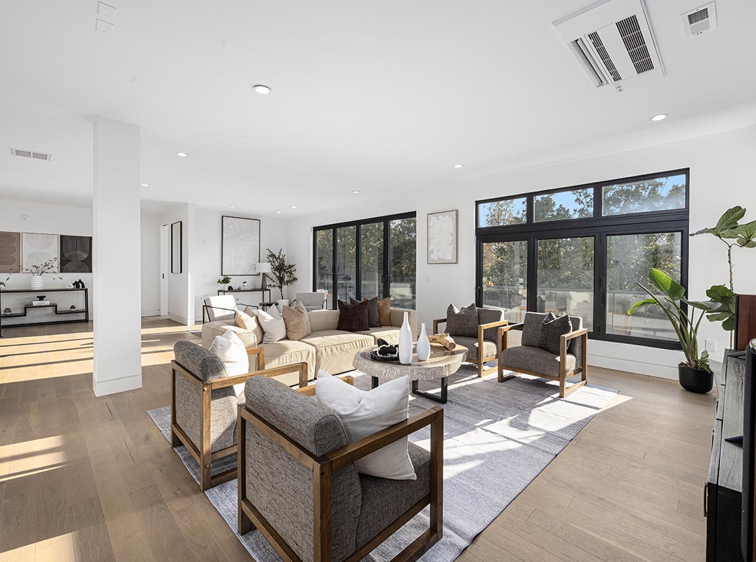 Completed in 2025, this breathtaking 8,010 sq. ft. luxury residence features cutting-edge design, curated finishes, and an amenity-rich floor plan tailored for upscale living in a prime Charlotte location. Set on a 0.3-acre lot near Plaza Midwood, Elizabeth, and Uptown, this six-bedroom home offers expansive living spaces and high-end construction details throughout. The open-concept main level features a striking two-story foyer, a chef’s kitchen with premium Miele appliances, a Sub-Zero wine fridge, Cabico custom cabinetry, and a dramatic granite waterfall island, plus a full scullery for additional prep and storage. The adjoining living and dining areas flow through oversized sliding glass doors to the outdoor patio for truly seamless indoor-outdoor living. A glass-enclosed flex room is ideal for a tasting room or office, while the main level also includes an ensuite guest bedroom and a spacious gym/recreation room. The upper-level hosts three additional guest bedrooms with ensuite bathrooms, a lounge with nano-sliding doors, access to a large patio with skyline views, and a powder room. The primary suite boasts two private balconies, dual custom closets, and a spa-inspired bath with a soaking tub inside the oversized shower suite. The impressive lower level offers a full guest apartment with a bedroom, living room, full bathroom, washer/dryer connection, and mini kitchen. The dedicated theater room is expertly engineered for a true cinematic experience, featuring Dolby Atmos®–ready acoustic design, pre-wiring for full surround sound, specialized screen-optimized wall finishes, and ample space for luxurious seating and immersive entertainment. Additional lower-level spaces include a lounge/bar space, powder room, and mudroom with storage. With triple-pane windows, superior wall foundation, concrete exterior covering, multi-zone climate control, and premium energy-efficient systems, this home delivers luxury, performance, and lifestyle at an unmatched level.