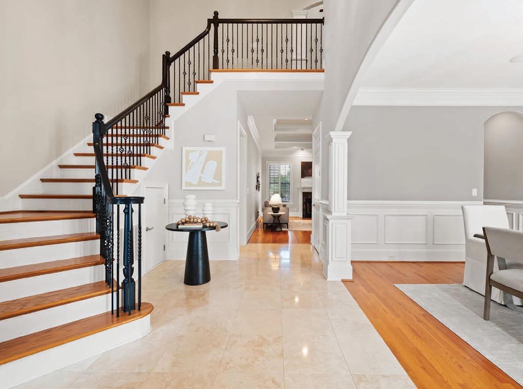 As you approach, you’ll be captivated by the home’s stately curb appeal, complete with meticulously manicured landscaping and a welcoming front porch. Step inside, and you’re greeted by soaring ceilings, gleaming hardwood floors, and an abundance of natural light that flows effortlessly through the open floor plan.