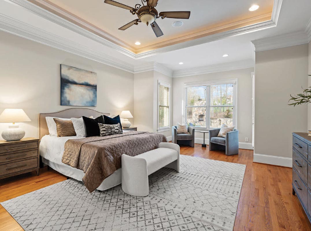Retreat to the luxurious primary suite, nestled on the first floor, a true sanctuary boasting a spa-like bathroom with a soaking tub, dual vanities, and a walk-in closet that dreams are made of. Additional bedrooms are generously sized, offering comfort and privacy for family and guests alike.