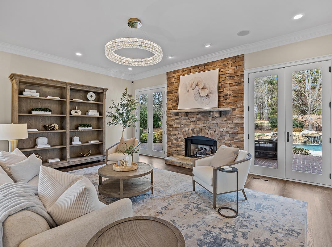 A quiet circular street tucked back off the main road with Lake Norman surrounding the peninsula from both sides. Views of beautiful Lake Norman and your boat slip just a short distance around the bend at Pier L, Slip 11. Covered screen porch, waterfall saltwater pool, and open-air terrace. Entertain guests in this stunning gourmet kitchen with Subzero refrigerator, new Wolf double ovens, warming drawer and gas cooktop, newly painted Tricorn color cabinets, gold fixtures and quartz countertops. This luxury estate has a versatile plan with the main level Owner’s retreat with its own terrace entrance, dual closets, bath with heated tile floors, tile encased shower, jacuzzi tub, down a private hall that passes a secluded office. Great room with a stone fireplace and views of your beautifully landscaped yard, stately dining room, butler’s pantry, half bath and drop zone. The second floor off the dramatic grand spiral staircase offers a great room with a gas fireplace, one ensuite bedroom and two additional bedrooms joined by a jack and jill bath. T
