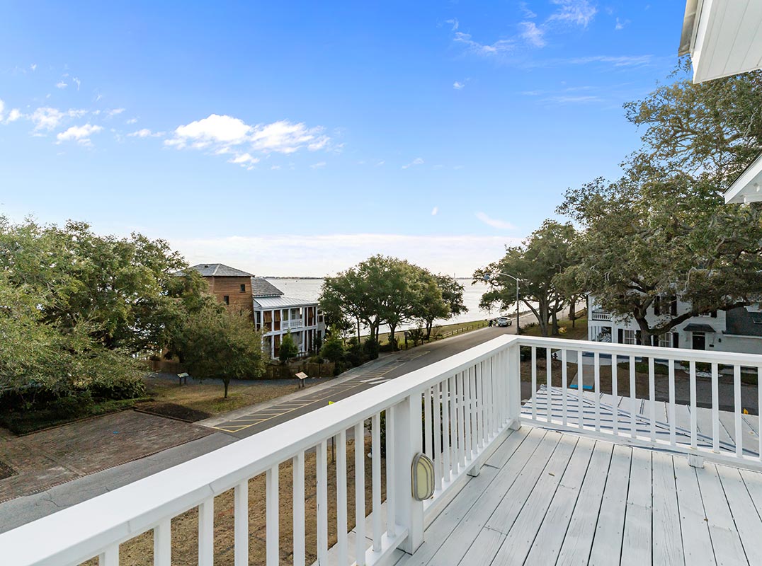 The front porch is positioned to capture direct river views and coastal breezes, creating a true indoor-outdoor lifestyle. Grounds are framed by mature oaks and include an irrigation system, pond with water feature, French drains, river rock detailing, decorative brick parking, and new picket and privacy fencing. Exterior updates include Low-E storm windows and glass front door, updated chimney caps and flashings, rebuilt side porch with metal roof, and a 2025 rebuilt upper balcony with new French doors and rear stoop roof replacement.