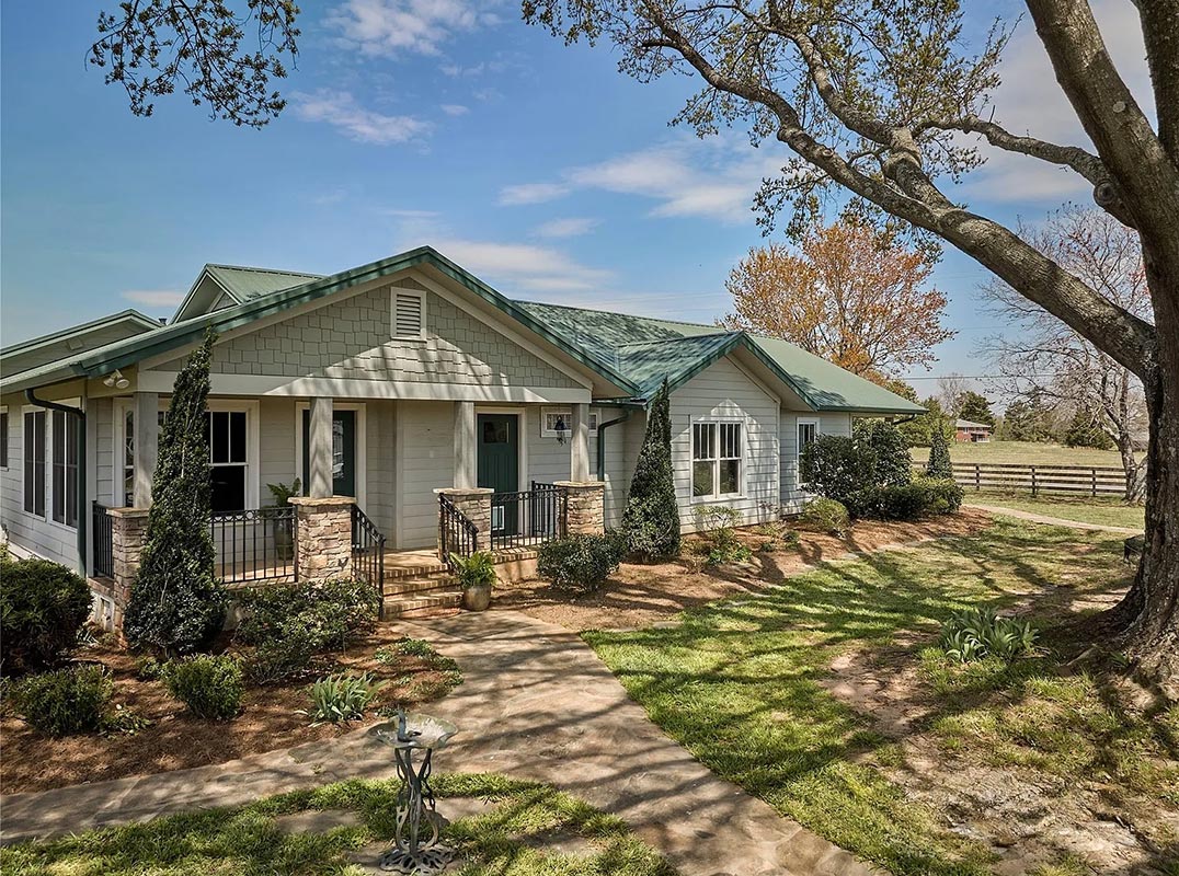 Discover timeless elegance and modern comfort in this beautifully restored 1929 home nestled on 20 fully fenced acres with 2 barns. This unique property offers the best of country living with high-end equestrian facilities, incredible views, and modern conveniences—an exceptional opportunity to own a turnkey horse property in the heart of NC horse country. Renovated to the studs in 2013, this home blends classic charm with updated sophistication, from beadboard ceilings, hardwood floors to curated modern touches in the primary, kitchen, and baths. Multiple turnouts, run-ins, hacking lanes, and a shared pond. Round pen and a large arena, circle drive for large rig access and parking. 4-stall center aisle barn with loft, washrack, feedroom, shaving storage. 8+ stall shed row barn includes tackroom, 2 tacking stalls, washrack, & equipment storage. Layout has been designed for true efficiency and ease. Just 15 minutes to TIEC. 40 mins to Greenville-Spartanburg Intl Airport.