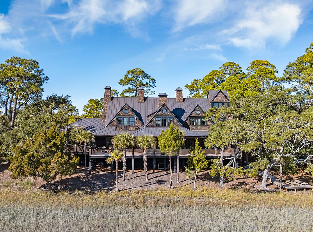 Set on a rare .87-acre double lot with long marsh and tidal creek views, 10 Summer Islands Lane is an architecturally distinctive Lowcountry retreat offering privacy, scale, and extraordinary craftsmanship. Designed by renowned architect Mark Finley and built by Pugliesi Builders in 2002, this exceptional 5,793 square foot residence captures panoramic views from nearly every room and offers ample space for the addition of a large custom pool.