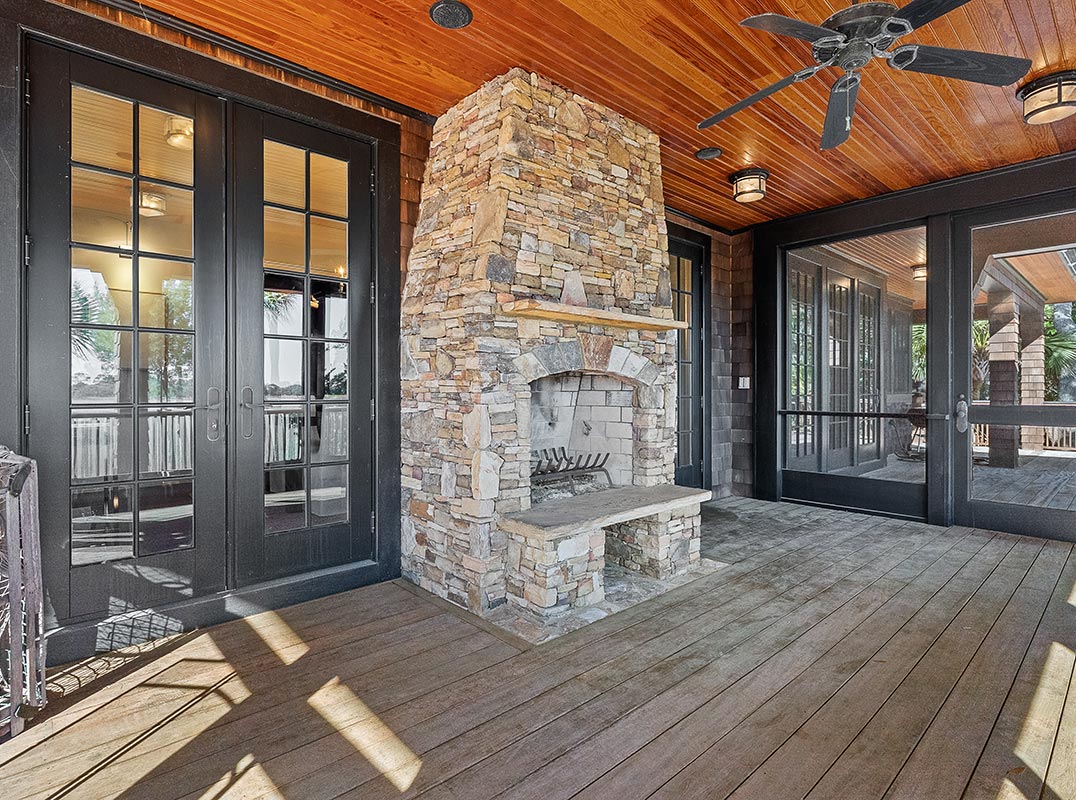 The home features four bedrooms and four-and-a-half baths, including a private one-bedroom guest cottage, all thoughtfully designed to balance elegance, comfort, and functionality.From the moment you enter the foyer appointed with rich cherry paneling and striking Art Deco chandeliers the home's architectural sophistication is immediately evident. At the heart of the residence is a warm and inviting kitchen with fireplace, showcasing cherry cabinetry, exposed beams, a large center island with gas cooktop, and a commercial stainless steel range hood. A generous dining area is seamlessly integrated, while the adjacent formal dining room offers direct access to the screened porch, perfect for entertaining. The screened porch, complete with a wood-burning natural stone fireplace, serves as an inviting extension of the living space. The living room, featuring a fireplace and wet bar, easily accommodates two distinct seating areas and is framed by wall-to-wall windows and doors that open to expansive wrap-around IPE decks, bringing the long marsh and tidal creek views indoors. An office/media room with mahogany paneling, cork ceiling, and deck access offers a refined yet comfortable retreat. Also on the first floor of the main house is a spacious laundry room with convenient access to the wrap-around deck. The private guest cottage, accessed via a covered deck from the main entrance, includes a spacious bedroom and a beautifully appointed bath with steam shower, offering guests complete privacy.