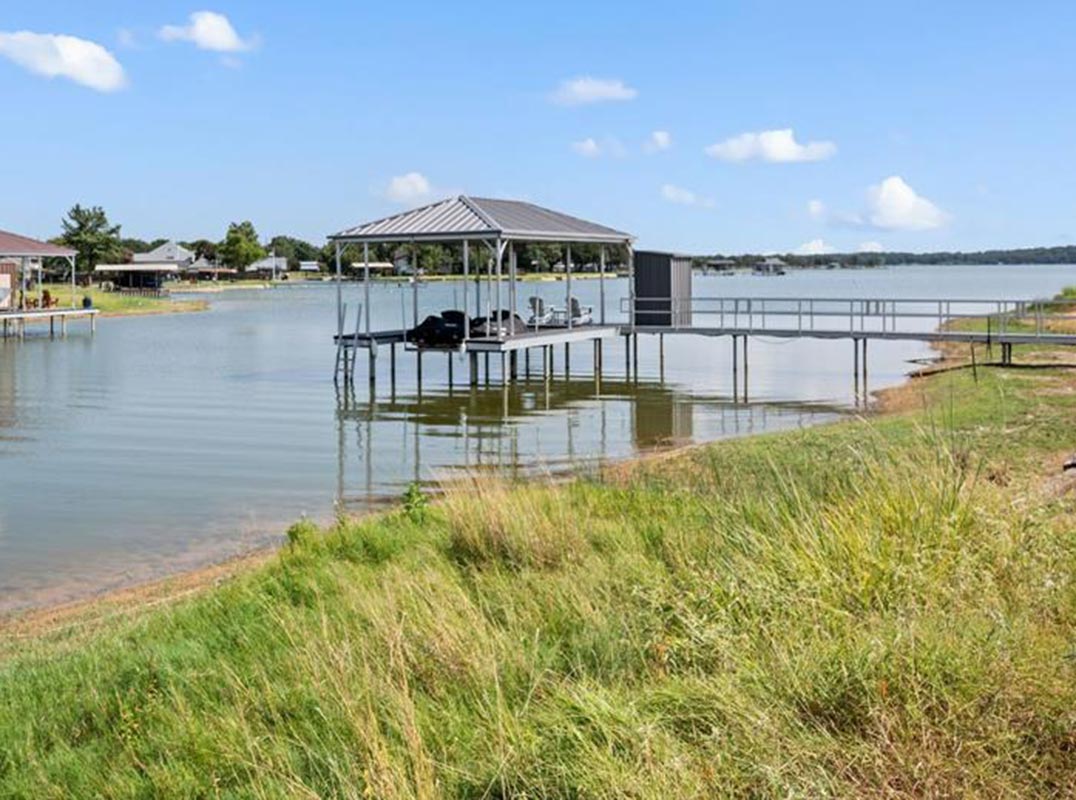 BC Homes Presents A Stunning Waterfront Escape in Laguna Bay. Experience the ultimate in lakeside living with this breathtaking custom-built home in the exclusive, gated Laguna Bay community on Eagle Mountain Lake. Perfectly positioned along a peaceful canal with direct lake access and sweeping open-water views, this property embodies the essence of a luxury waterfront retreat. Set on nearly an acre, this residence offers 4 generously sized bedrooms each with its own ensuite bath, a 3-car garage, and a floor plan designed for grand entertaining and private relaxation. The soaring 20-foot ceilings in the foyer and great room create an immediate sense of openness, seamlessly connecting to an expansive rear patio, lush yard, and the tranquil waters beyond. Bring your boat. The home will include a dock with lift for up to a 26’ watercraft. The primary suite is a private haven, featuring a spacious bedroom, a spa-like bath with wet room, an oversized walk-in closet, a dedicated laundry center, and a sophisticated study with 14-foot ceilings. The gourmet kitchen is a chef’s dream with Monogram appliances and a 48-inch induction range, perfectly complemented by elegant finishes. A cozy guest suite and a versatile game room complete the main level. Upstairs, a loft overlooks the great room, while two additional bedrooms share access to an expansive balcony ideal for enjoying unobstructed lake sunrises. Step outside to your private dock and embrace the true waterfront lifestyle that only Laguna Bay offers. BC Homes invites you to discover this rare combination of elegance, comfort, and direct lake access where every detail has been thoughtfully crafted for those who expect nothing less than the best.