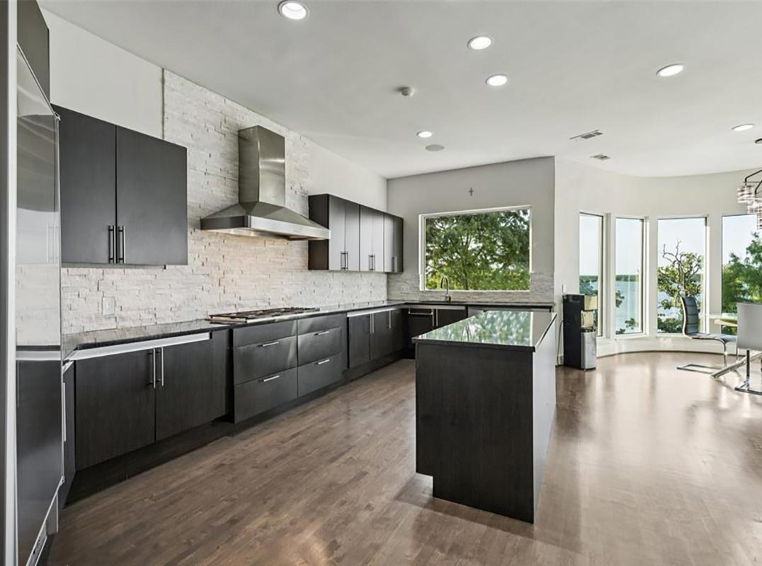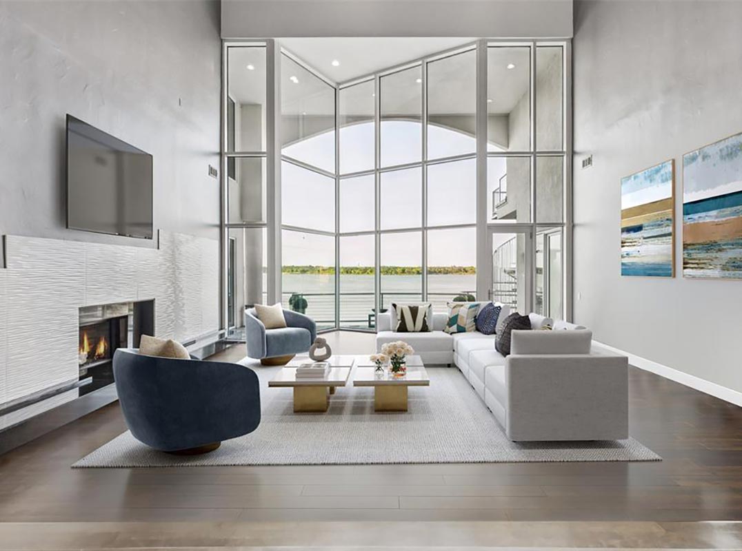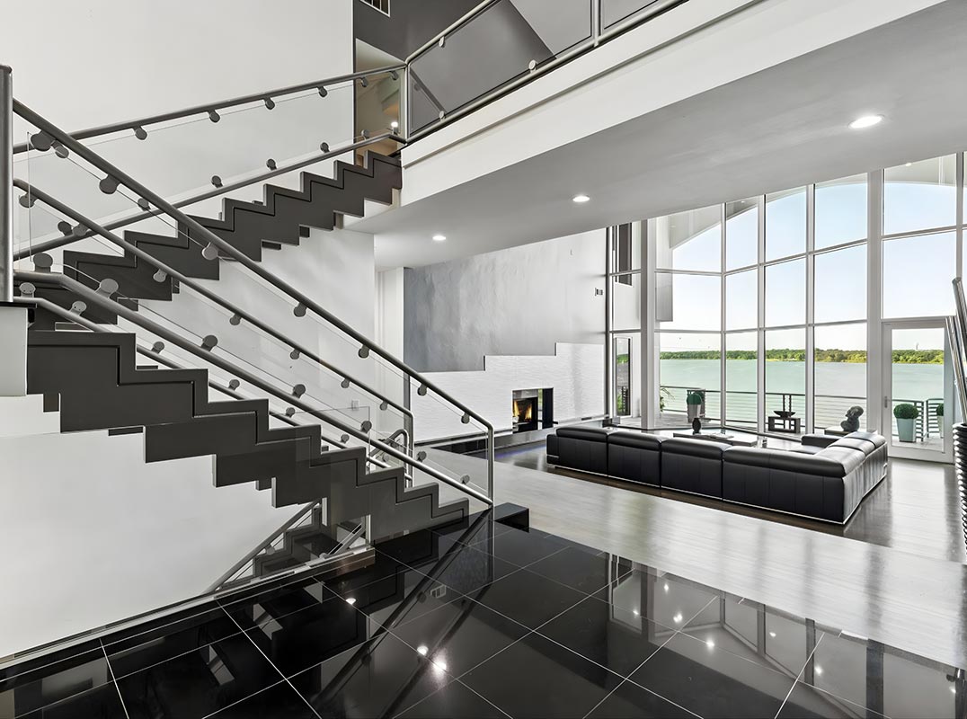 Where cutting-edge design meets the serene beauty of the water—this ultra-modern lakefront estate delivers a lifestyle like no other. Perfectly positioned on a quiet cul-de-sac and spanning an impressive 179 feet of pristine Lake Lewisville shoreline, this three-story, 8,553 sq ft showpiece offers sweeping, unobstructed lake views from nearly every room. From the moment you step inside, 30-foot ceilings and walls of commercial-grade glass frame the ever-changing blues of the lake, blurring the lines between indoors and out. Architectural artistry shines in the dramatic floating staircases, multiple view-drenched balconies, lighted art niches, and a striking floor-to-ceiling glass wine display. Designed for both grand entertaining and private escapes, the home features 4 bedrooms, 5 full baths plus a half bath, a study that could also be utilized as a 5th bedroom, media room, game room, gym, and an indoor heated spa with dry sauna. The main level hosts a chef’s dream kitchen with granite countertops, professional-grade stainless appliances, 6-burner gas cooktop, double ovens, and a Sub-Zero built-in refrigerator. The owner’s retreat is a sanctuary of its own, complete with a private balcony where you can savor sunrise over the water and end your day with mesmerizing sunsets. Outside, resort-style amenities abound—an infinity-edge pool that seemingly spills into the lake, an outdoor kitchen with grill, and multiple covered patios perfectly oriented for entertaining against a breathtaking backdrop. Energy-efficient features, a durable metal roof, and meticulous maintenance ensure this residence is as functional as it is beautiful. This is more than a home—it’s a front-row seat to the most spectacular views Lake Lewisville has to offer, and the pinnacle of waterfront luxury living.