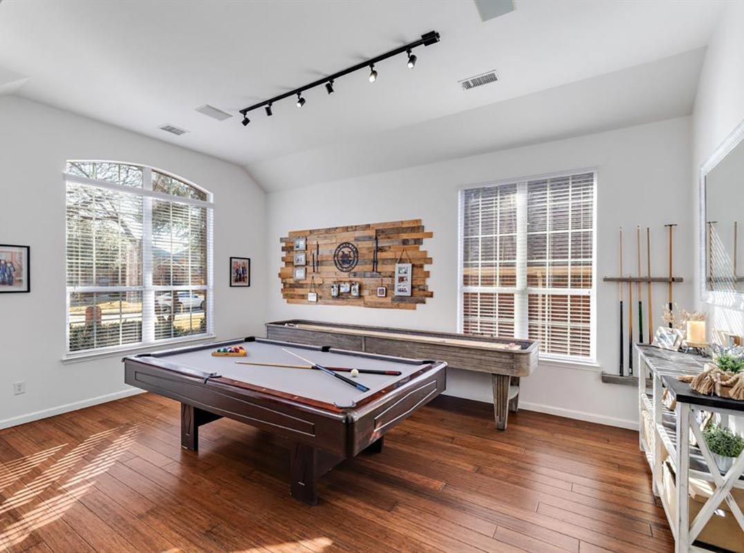 Frisco ISD, Reedy HS, two bedrooms down, pool, spa! Discover luxurious family living in this meticulously maintained residence, perfectly situated in the prestigious Frisco ISD, zoned for the acclaimed Reedy High School. Ideal for growing families, this home offers two spacious bedrooms downstairs - perfect for guests, in-laws or a home office setup - along with an additional four generously sized bedrooms upstairs. Attractive wood floors flowing throughout the downstairs living areas, creating a warm ambiance. The heart of the home shines with a fully remodeled kitchen featuring modern appliances, sleek countertops, ideal for entertaining and everyday meals. The spacious primary bedroom has been beautifully updated, dual vanities, separate shower and plenty of natural light. Outside your private oasis awaits with a sparkling swimming pool and separate spa - excellent for year-round relaxation and weekend gatherings. An electric gate provides added security and privacy at the entrance. This exceptional property combines thoughtful updates, functional layout and resort style outdoor amenities in one of North Texas' most desirable school districts. Don't miss the opportunity to own this gem in Frisco - where top tier education meets comfortable, upscale living!