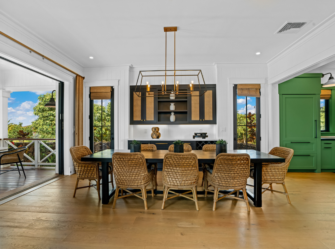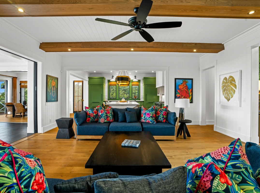 5309 Kainani Place is a 4-bedroom, 4.5-bath custom home above the 3rd hole of the Tom Weiskopf designed golf course, with ocean, golf, and sunset views. A detached 1-bedroom, 1-bath ‘ohana with private entry offers flexibility for guests or multigenerational living. Designed for effortless island living, the open-concept great room flows into a generous lānai with a pool and spa, ideal for entertaining or quiet relaxation. The gourmet kitchen features Sub-Zero and Wolf appliances, a large island, and rich quartzite countertops.
