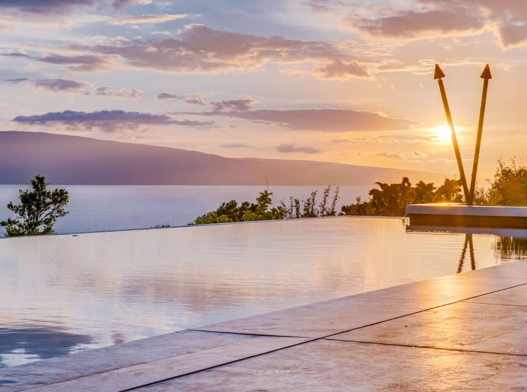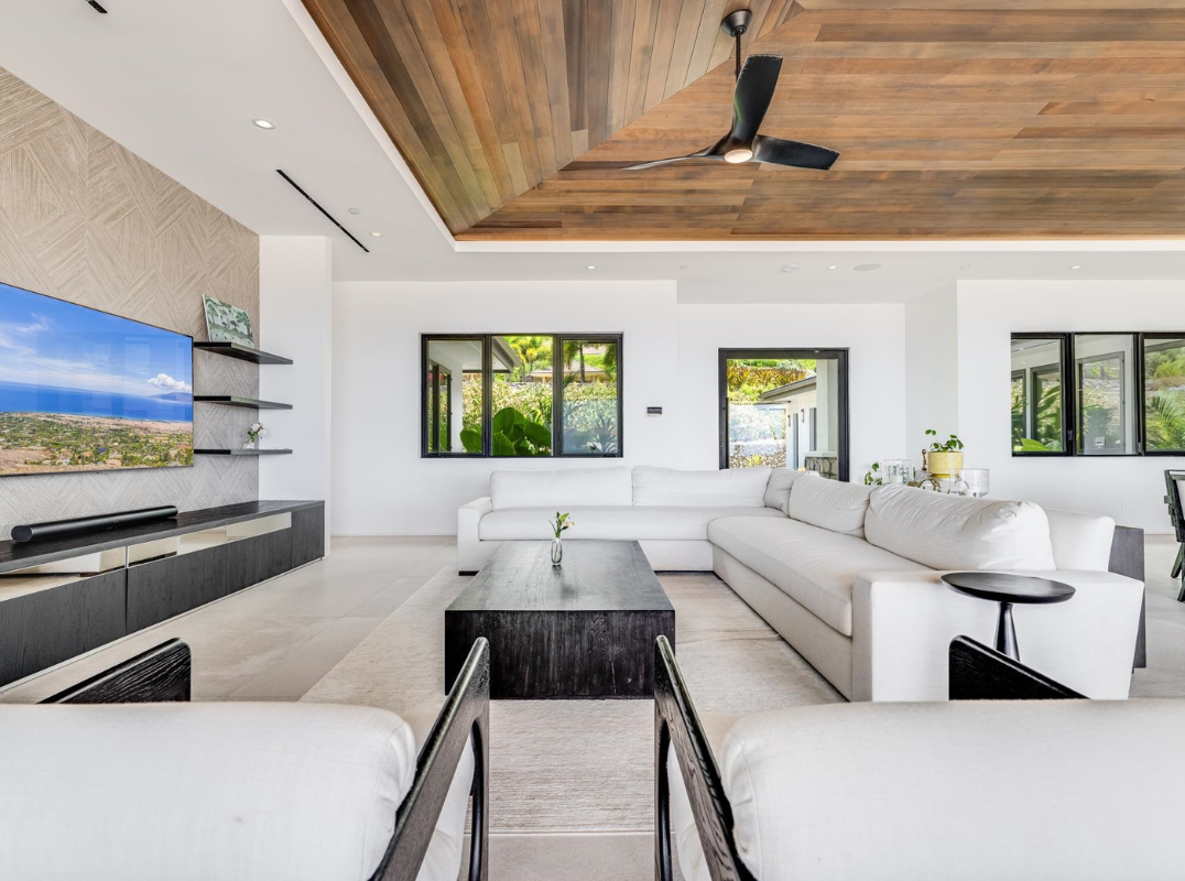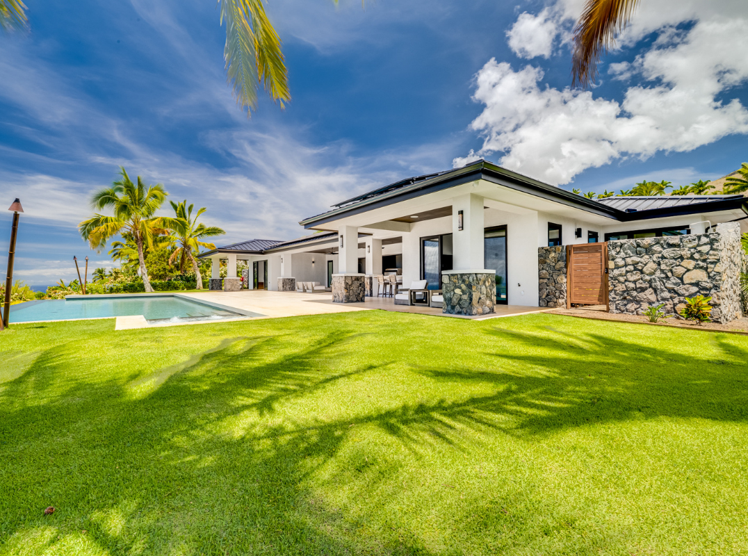Set on a secluded and gated one-acre lot in Launiupoko, 16 Kumu Niu Place is a contemporary masterpiece offering 4,011 square feet of elevated living space. The home is designed to embrace unobstructed ocean and island views at every turn. This residential condominium home has 3 spacious bedrooms plus a bonus room and 4 bathrooms. Two primary suites open to enclosed outdoor showers surrounded by lush tropical gardens. These spa-like retreats capture the spirit of island living, blending privacy, luxury, and a connection to nature. The great room serves as the heart of the residence, a soaring space framed by vaulted wood ceilings and expansive retractable glass doors. From here, the views stretch endlessly across the Pacific, creating a sense of openness that extends through every corner of the home. The kitchen at 16 Kumu Niu Place is a showcase of refined design. Anchoring the space is a Fisher & Paykel Professional Series Dual Fuel Range, with six high-output gas burners and an electric convection oven that delivers restaurant-quality performance. Warm wood cabinetry and sleek stone surfaces frame the space, while a pass-through window ideal for hosting connects the kitchen to the expansive covered lanai, allowing food and drinks to be served with ease. Living flows seamlessly outdoors to an expansive 1,104-square-foot covered lanai, a true extension of the interior with lounge and dining spaces positioned to take in spectacular sunsets. A built-in stainless steel BBQ and wet bar set the stage for al fresco dining, while the infinity-edge pool reflects the shifting colors of sea and sky. A gorgeous infinity-edge pool and spa at 16 Kumu Niu Place create a resort-style experience in the privacy of the home. Perfectly positioned to capture sweeping ocean and island views, the pool blends seamlessly with the horizon, reflecting the vivid blues of sky and sea by day and the fiery hues of Maui sunsets by evening. The adjoining spa offers a soothing retreat, where bubbling waters invite relaxation beneath swaying palms. At night, the glow of tiki torches frames the terrace, turning every swim or soak into a cinematic moment that celebrates the beauty of Maui’s west side. Energy efficiency is seamlessly integrated with a fully owned photovoltaic system, while an 855-square-foot garage provides ample space for vehicles and storage. The well-appointed laundry room is outfitted with double washer-dryer units designed for convenience and function. The interiors are cooled by discreet Linear AC vents that maintain a clean, modern aesthetic, while natural light and panoramic views flood every corner. Kerfed-jam doors further enhance the seamless transitions throughout, underscoring the craftsmanship and attention to detail. The residence is beautifully furnished with Restoration Hardware pieces, chosen for their timeless elegance and comfort. Every room reflects a refined yet relaxed design sensibility, balancing modern lines with natural textures and creating a turn-key living experience. With its modern design, refined finishes, and a setting that captures the very best of West Maui, 16 Kumu Niu Place is a statement of contemporary island luxury, crafted for those who seek beauty in every detail.