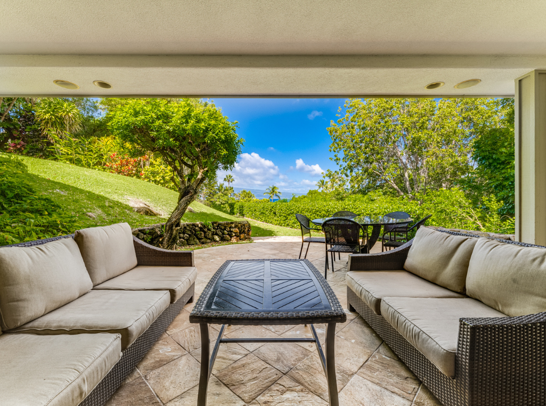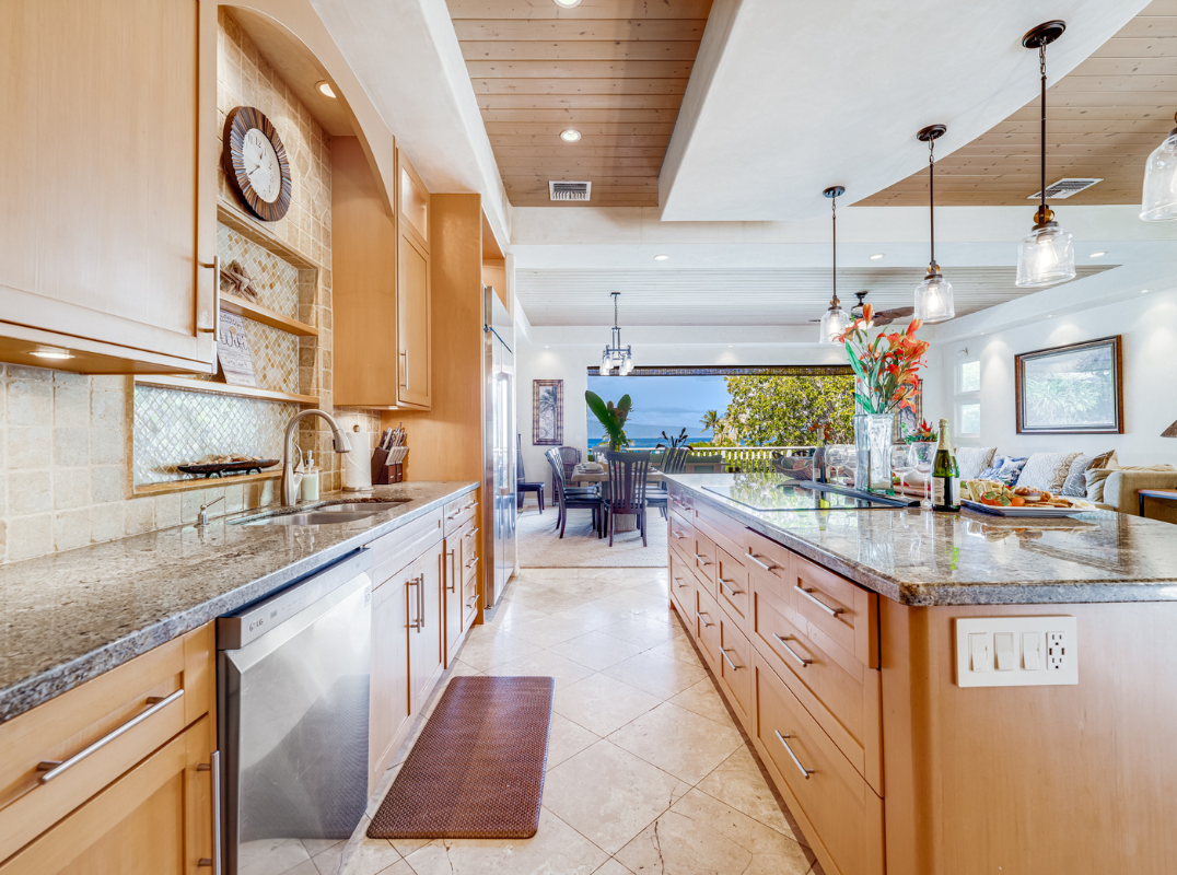 Alaeloa 9 is a spacious, four-bedroom, four-bathroom ocean-view home located steps away from the beautiful blue, turtle-filled waters of Napili. The home is located within an idyllic 13.357-acre oceanfront community known as Alaeloa. Alaeloa 9 is unique, as it is the only residence with a dedicated entrance to the shaded walkway that leads down to the beach cove and oceanfront pool area; the beach is just a three-minute walk from the home! Residents enjoy a heated, community saline pool with a fresh-water shower and bathrooms and a sandy entrance to the beach. The beach is swimmable, and the waters are known to be frequented by Hawaiian Green Sea Turtles. The home has luxurious amenities and charm, including upper-level and ground-level covered lanais, allowing for classic indoor-outdoor living and stunning ocean views! A spacious Primary bedroom boasts a fantastic en-suite bath. Two additional bedroom suites also feature en-suite baths, while a third utilizes an adjacent bathroom. A flex room may be used as a guest room as needed, allowing the home to accommodate up to 14 guests. Enjoy creating delicious meals with fresh local ingredients in the gourmet kitchen or fabulous BBQ on the lovely outdoor grill space. Mature Hawaiian flora, fragrant blossoming tropical flowers, and a privacy wall of bamboo trees line the backyard. Alaeloa management staff lives on-site, overseeing full-time maintenance and landscaping teams, so the dreamy, lush Hawaiian setting is always picture-perfect. The home is within easy reach of Napili Bay, Kapalua Beach, the Ka'anapali Resort, and the world-famous Kapalua Plantation & Bay Golf Courses. Alaeloa 9 is a Leasehold Property, and is grandfathered for one vacation rental per month, allowing the home to serve as a revenue generator. The property also comes furnished, including a 6-passenger golf cart!