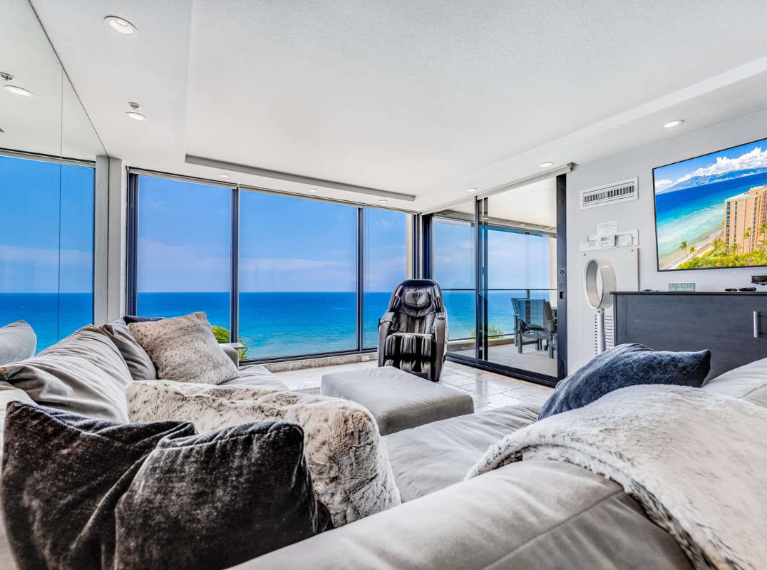 Mahana #806 is a stylish West Maui residence where panoramic ocean views await at every turn, and the lap of the waves is your daily soundtrack. Sitting right on West Maui's famed golden sands in the sought-after Mahana at Kaanapali complex, Residence 806 enjoys a prestige location. For those looking to use the residence part-time, Mahana at Kaanapali is hotel-zoned, meaning the residence can be legally offered as an oceanfront vacation rental. The resort has a strong following with guests returning year after year. With its oceanfront location and stylish design, residence 806 is a standout option in the West Maui rental market. Plus, it’s turnkey! Entering this one-bedroom, one-bathroom residence, your eyes are immediately drawn to the boundless views of the Pacific Ocean and the outer islands of Lana’i and Moloka’i. Floor-to-ceiling windows invite you to soak up the stunning setting. During whale season, you are able to watch the magical spectacle of humpback whales breaching right from your private lanai, while every night you are treated to West Maui's world-famous painted sunsets. The interior has been tastefully updated, maintaining a clean, modern aesthetic while still letting the real star, the ocean, steal the show. Central air-conditioning keeps the space cool and comfortable, while soft, soothing color palettes and island-themed accents create an inviting atmosphere. The chef's kitchen is fully equipped with granite countertops and sleek cabinetry. Serve up tropical morning smoothies at the kitchen breakfast bar or impress guests with a meal of fresh local catch at the dining table, all while enjoying the unobstructed ocean views. The living area is open and inviting, with sliding glass doors that frame the horizon and allow for seamless access to the 118 sq. ft. lanai, the perfect outdoor space to start and end your days in paradise. The bedroom features a king-sized bed and peaceful ambiance, while the updated bathroom offers a tiled walk-in shower and modern fixtures. Including the full-size sleeper sofa in the living room, this residence comfortably accommodates up to four guests. Mahana at Kaanapali delivers top-notch resort amenities, including a heated swimming pool and spa tub, tennis and pickleball courts, a shuffleboard court, and a picnic area. World-famous Ka’anapali Beach offers endless opportunities for snorkeling, paddleboarding, and beach walks. Nearby Whalers Village is a destination for shopping, oceanfront dining, and live music. For a round of golf, the Royal Ka’anapali and Ka’anapali Kai courses are a quick drive away. The Kapalua Resort, with its PGA golf course and award-winning beach, is just a short ride up the road. Whether you’re looking for a Maui getaway, a second home, or an income-generating vacation rental, Residence 806 checks every box. You’ll enjoy the full-service perks of a resort, with 24-hour front desk, security, concierge services, and more, and a tasteful retreat to call your own.
