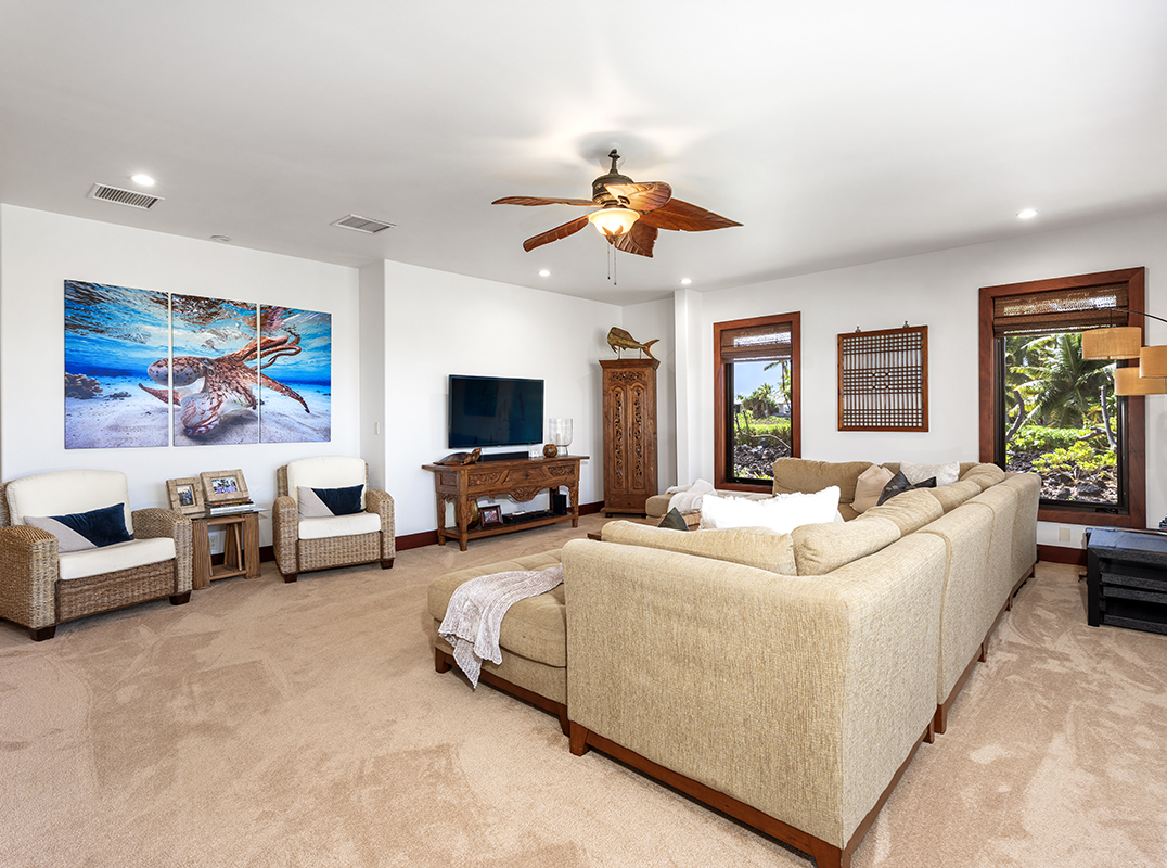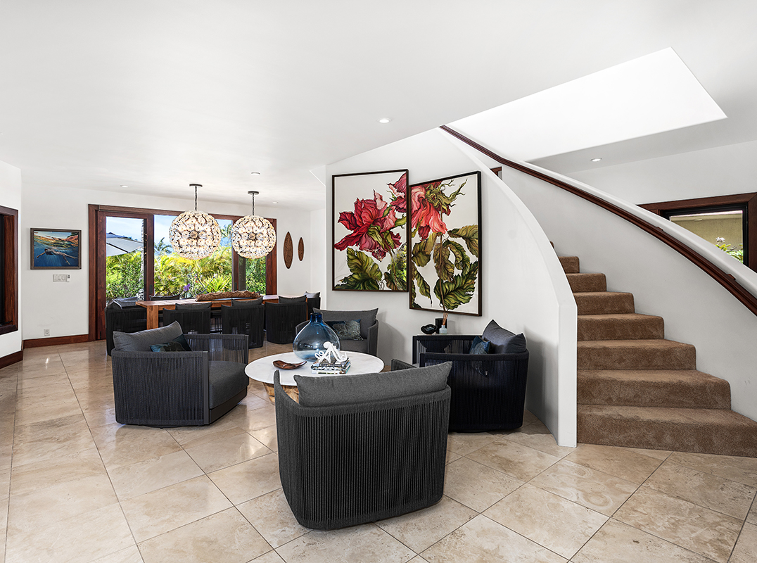 Welcome to 49 Black Sand Beach, a premier private community nestled on the picturesque Kohala Coast. Situated directly on Honoka’ope Bay, this exclusive enclave boasts a private Beach Club that offers an unparalleled array of amenities. The property’s architectural marvel is a two-story residence that spans nearly 4,900 square feet of living space. It is situated within the community’s heart, occupying an area of over an acre. Surrounded by lush, mature landscaping, the property exudes an enchanting ambiance. “Your dream home is waiting for you”