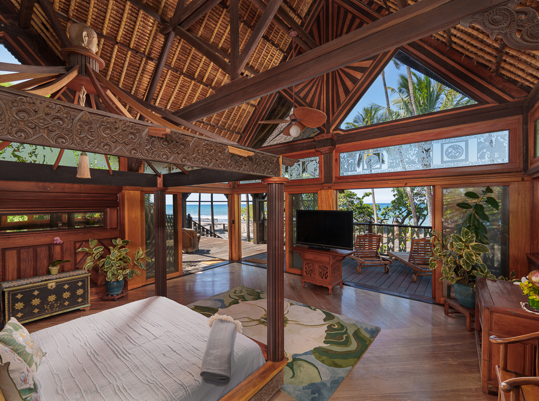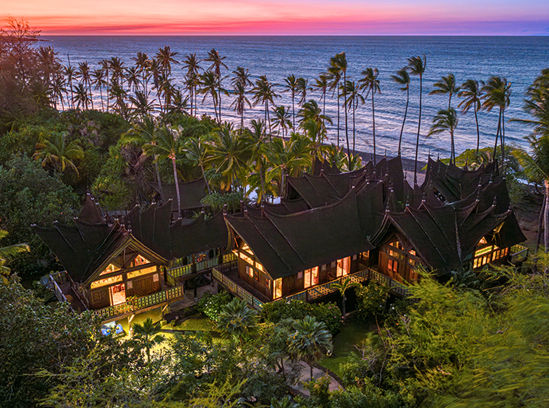 This architectural masterpiece, featured in Wall Street Journal, is where the soul of Bali meets the majesty of the Kohala Coast. Once the private sanctuary of entrepreneur John Paul DeJoria, this fully solar-powered estate is one of a handful of residences in the ultra-exclusive Kiholo Bay. Handcrafted in Indonesia and reassembled with traditional joinery, the compound features a breathtaking “dragon skin” roof of 1.3 million shingles. Elevated pavilions are interconnected by a rhythmic series of open-air covered decks, creating a high-altitude sanctuary perfectly designed for a seamless indoor outdoor lifestyle. A self-sustaining legacy property, it offers unparalleled privacy amidst conservation lands.
