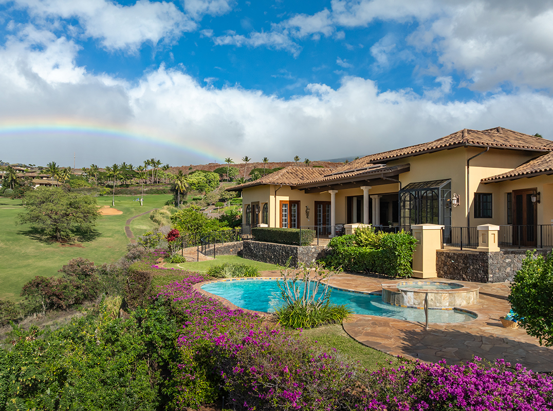 Embrace this one-of-a-kind Tuscan Villa in Paradise! Perfectly perched on the premium parcel located in Phase 1 of the exclusive gated community known as Lanikeha (within the Kaanapali Golf Estates), the estate offers spectacular breathtaking sunset ocean views, island (Molokai and Lanai), golf fairway (hole #7 of Kaanapali's world-famous Kai Course) and the Kaanapali Resort. Exquisitely envisioned & constructed with the finest custom materials imported from around the globe, every aspect of this Villas reveals the best of luxury island living; 16ft. vaulted ceilings (with ceiling wood beams), Brazilian travertine floors, hand scraped walnut wood floors, crown & baseboard hardwood molding, hand-cast stone columns, arches & accents, domed & beamed ceilings and custom cabinetry by Williams Ohs. Further evidence of this enchanting décor includes the Blue Bahia Custom Granite & specimen Quality Onyx Counter tops, Gemstone quality rose quartz master vanity & 18K Gold Plated & crystal fixtures. Appliances include Viking, Sub-zero & Bosch systems This 3 bedroom, 4.5 bathroom single-level estate also offers an office, surround sound HD theater (complete with mini-stage & custom seating), sound & security system, heater pool & spa with complete outdoor pool-side kitchen (accessed via multiple ramp pathways) & three vehicle garage amenity. Meticulously maintained, estate improvements include the painting of the entire exterior estate & driveway (2025) & new washer & dryer (2026) Lanikeha is West Maui’s newest gated community; 110 acres with 132 parcels, Lanikeha Club House offers community spa, pool, & exercise room. Monthly maintenance fees include the following: $248.85 for Kaanapali Golf Estates (paid quarterly), $708.25 for Lanikeha (paid monthly) for a monthly total of $957.10. The 2025/2026 monthly real property tax is $1,750 (classification: owner occupant). Information may not correspond to public records. Buyer/buyer's agent to confirm all information. YOUR Time is Now.