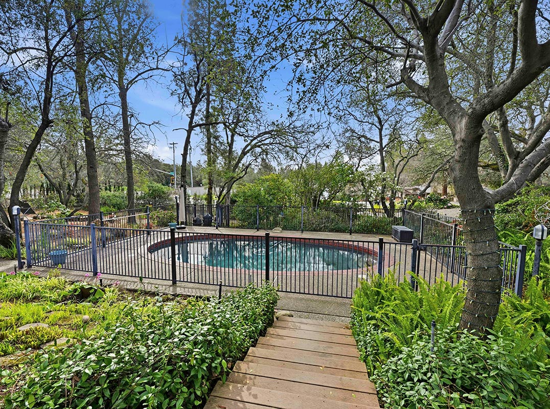 Tucked away in the tranquil beauty of Folsom Lake Estates in prestigious Granite Bay, this custom solar-powered residence seamlessly blends rustic elegance with modern luxury. Set on an oak-studded 1.2-acre parcel, one of the largest lots in the community, this private retreat offers the perfect balance of seclusion and convenience. The interior showcases a dramatic and spacious design, highlighted by a soaring central gallery hall with clerestory windows that bathe the home in natural light. Designed for both everyday living and entertaining, the open living areas feature a generous living room with gas fireplace, a formal dining area, and beautifully updated bathrooms with Carrara marble and porcelain tile throughout. The home offers four bedrooms and two-and-a-half baths, including a luxurious primary suite complete with an indoor spa and redwood sauna. A large family room with custom built-ins and private courtyard access provides exceptional flexibility for work, media, or multigenerational living. Outdoor living is equally impressive -- expansive patios invite year-round enjoyment alongside a sparkling built-in gunite pool. The professionally curated landscaping has been thoughtfully designed to include perennial gardens and specimen trees that provide color and interest throughout the seasons. Ideally located just moments from Beals Point and Folsom Lake, where you can enjoy boating, paddleboarding, and waterfront picnics, along with miles of nearby biking, hiking, and walking trails that wind through scenic open space. Whether you prefer an active lifestyle or peaceful nature walks, this location delivers year-round outdoor enjoyment just beyond your doorstep. A rare opportunity to own a sustainable, stylish retreat where luxury living meets an unmatched outdoor lifestyle in one of Granite Bay's most desirable neighborhoods.
