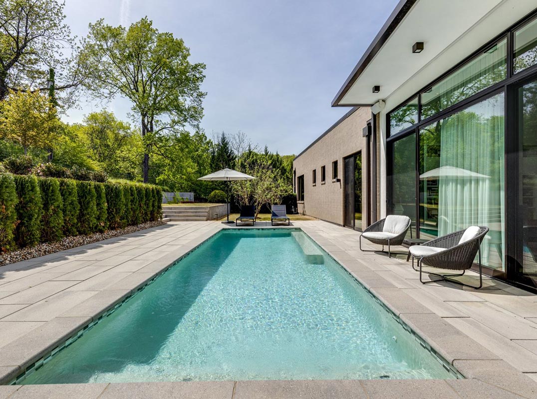 Perched on two private acres in West Meade, this architectural triumph by visionary Manuel Zeitlin redefines contemporary elegance. A masterwork of modern design, it blends innovation with natural beauty. The dramatic open layout flows to a resort-caliber outdoor retreat with a custom saltwater pool, terraces, and manicured grounds, offering tranquility and refined seclusion - just minutes from the heart of Nashville.