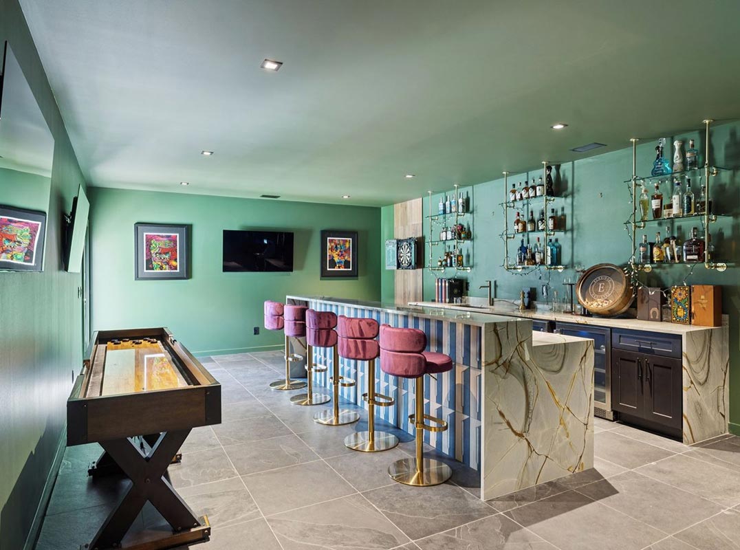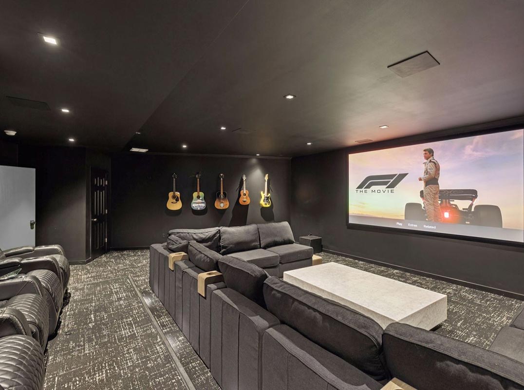 At the heart of the home lies a chef’s kitchen with premium appliances, custom cabinetry, and an oversized island, flowing seamlessly into spaces designed for leisure and luxury: billiard room, private cinema, golf simulator, gym, and a guest suite with private entrance. The primary wing is a sanctuary with spa-inspired bath and dual custom California Closets, creating an environment of rest and renewal.