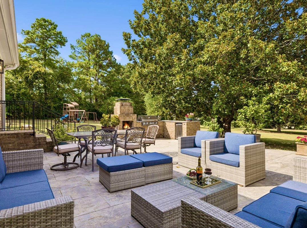 This very unique offering at the end of a very QUIET CUL-DE-SAC is the ideal home for someone who needs a private IN-LAW APARTMENT / guest house / multi-family arrangement. Original home shows very well and has lots of updates with four bedrooms (including original primary suite) and big SPACIOUS KITCHEN (TWO INDOOR KITCHENS!) great room, and dining room. HUGE PATIO with OUTDOOR KITCHEN/fireplace for entertaining. In 2018 seller completed BIG addition which holds in-law quarters and new primary suite. HUGE finished basement with fireplace also has a flex room currently being utilized as a sixth bedroom option (no window but has direct bath access). Plenty of conditioned/unconditioned storage options. BIG 1.25 acre lot offers lots of possibilities! FULLY IRRIGATED lawn and landscape beds! This property is located on the west end of Concord