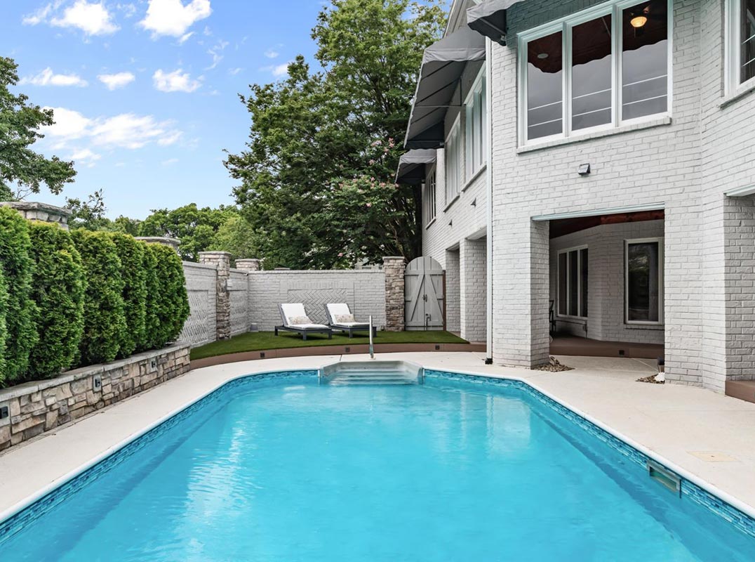 Outside, a completely private oasis awaits, featuring a saltwater pool with new liner, a hot tub, fountain, and a gas fire pit creating the perfect setting for both relaxation and entertaining. Two garages, including one gated for further privacy, add convenience and further security. An expansive home office provides the ability to command your schedule from the comfort of home, blending productivity with convenience. Clad in rich wood paneling, a commercial-grade elevator offers both elegance and ease, ensuring seamless access to every corner of the residence. A full “to the studs” renovation, completed in 2019, ensures that every element of this home reflects modern comfort, quality, and peace of mind. Nestled within the highly sought-after gated community of Whitworth, this home places you minutes from Green Hills, the West End corridor, downtown Nashville, leading hospitals, and the Nashville airport. An ideal location for both daily living and frequent travel. This Whitworth jewel offers modern comforts and unmatched convenience! Please refer to the attached list of improvements for the full scope of upgrades