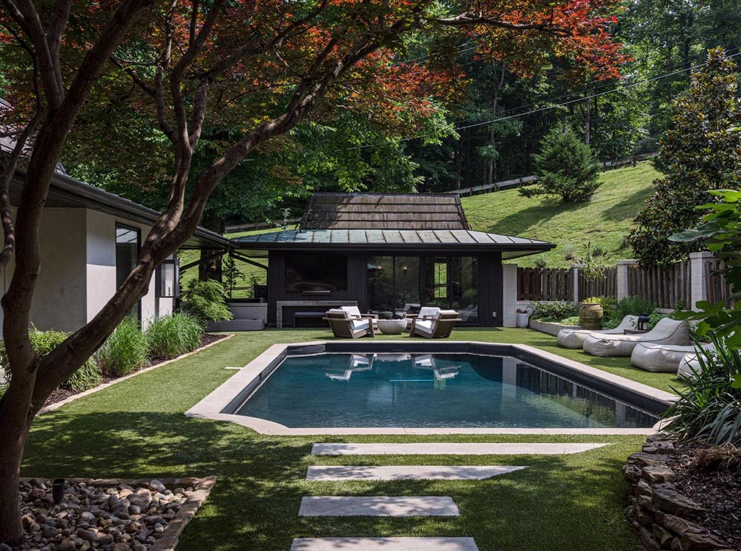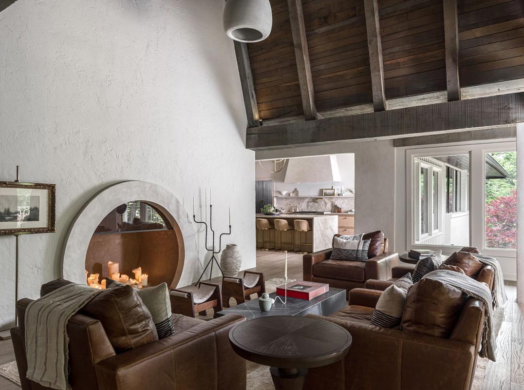 Tucked into the wooded curve of Crater Hill, this 2.3 acre sanctuary blends the refinement of sophisticated architecture with grounded, organic design. Reimagined by the sought-after Millworks Design, here natural materials, light, and landscape converge to create a truly restorative living experience. A sculptural roofline with clay tile and copper detailing sets the tone, while walls of glass and timber beams bring warmth and volume to interiors with soaring 25-foot ceilings in the living room and den. The chef’s kitchen, with Taj Mahal countertops, anchors the home while a wood-paneled ceiling crowns the the dining room, framing panoramic views of the surrounding hills and tree canopy. A spa-like primary suite offers heated floors, a steam shower, and an atmosphere of deep calm, enhanced by direct sightlines to the manicured pool and surrounding landscape, blurring the line between indoors and out. Downstairs, a theater room, bar, and flex space offer effortless entertaining, while an additional bedroom suite and laundry provide both privacy and function. Outside, the experience continues featuring a newly resurfaced pool, a pool house with kitchenette and half bath, al fresco dining with a grill station, and a setting alive with wildlife and layered greenery. Every detail, including the encapsulated crawl space with dehumidifier, whole-home generator, and garage with epoxy-coated floors and drop zone, has been thoughtfully considered. Here, architecture is art, nature is a collaborator, and you are home.