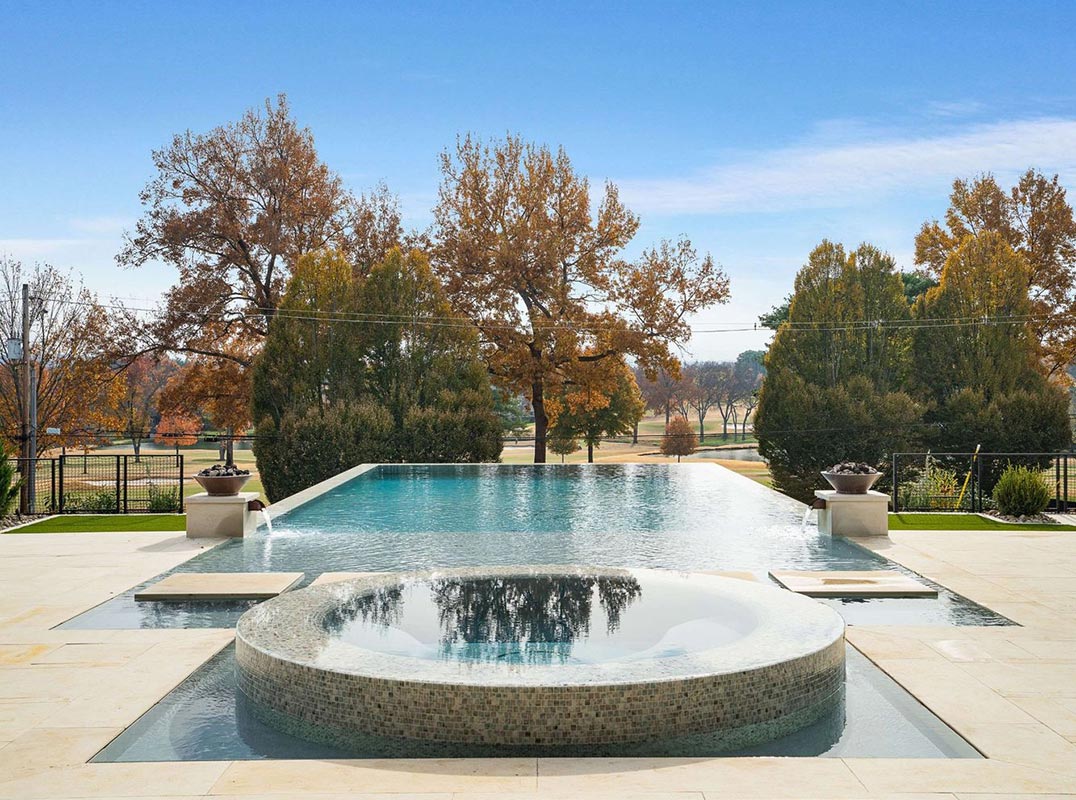A Masterpiece by Justin Franks – Encore Construction. Step into refined elegance and resort-inspired living in this architectural masterpiece on 1.76 professionally landscaped acres. This full masonry home showcases Tennessee Gray Platinum limestone, Indiana limestone accents, and hand-hewn Sassafras wood—setting the tone for exceptional craftsmanship. Inside, the foyer features heated Himalayan Ice stone flooring and a custom white oak staircase with iron railings. The great room boasts soaring ceilings, clerestory windows, a 60" marble-wrapped masonry fireplace, and site-built oak cabinetry. The kitchen impresses with inset oak cabinetry, a book-matched stone island, 60” Wolf range, Sub-Zero refrigeration, and Cove dishwasher. The primary suite is a tranquil retreat with scissor truss oak beams, heated limestone floors, dual water closets, and a spa-like bath with marble vanities, steam shower, and soaking tub. All five bedrooms include walk-in closets and en-suite baths with premium finishes. The showstopping resort-style pool, designed by Jason Brownlee, overlooks Hole 3 of Hillwood Country Club. It features a perimeter-overflow design, Mediterranean blue Hydrazzo plaster, UV-ozone system, copper fire bowls, and LED lighting. Outdoor living is elevated with Himalayan Ice stone decking, glass safety railings, porcelain veneer walls, synthetic turf, masonry fireplace, cedar pergola, and an outdoor kitchen with Wolf and Santa Maria grills. Additional features include a three-floor elevator, wellness suite with gym, sauna, and steam shower, golf locker room, simulator-ready AV room, garages for five cars (car lift ready), Control4 smart home system, and whole-home audio. Blending warm, natural materials with state-of-the-art systems, this one-of-a-kind residence redefines modern luxury.