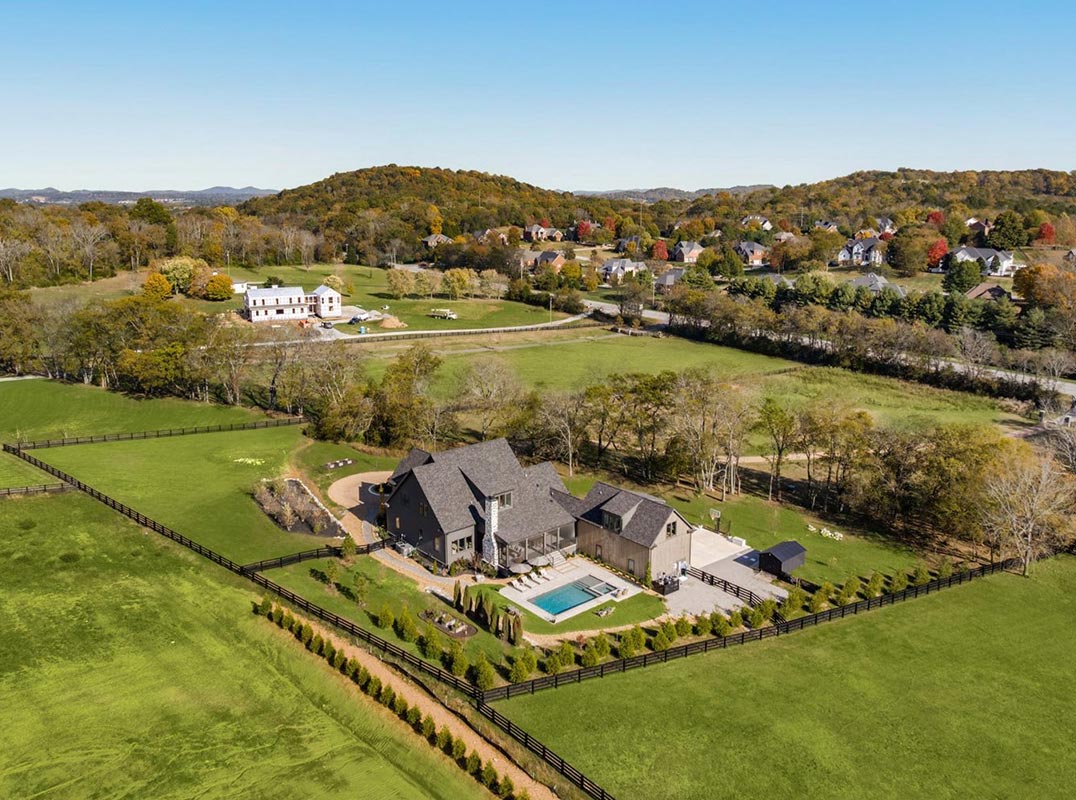 Tucked behind a tree lined drive on more than five beautiful acres in one of Franklin’s most coveted locations, this newly built custom home built by Jamie Ferguson offers a rare blend of refined luxury, privacy, and timeless Tennessee living.