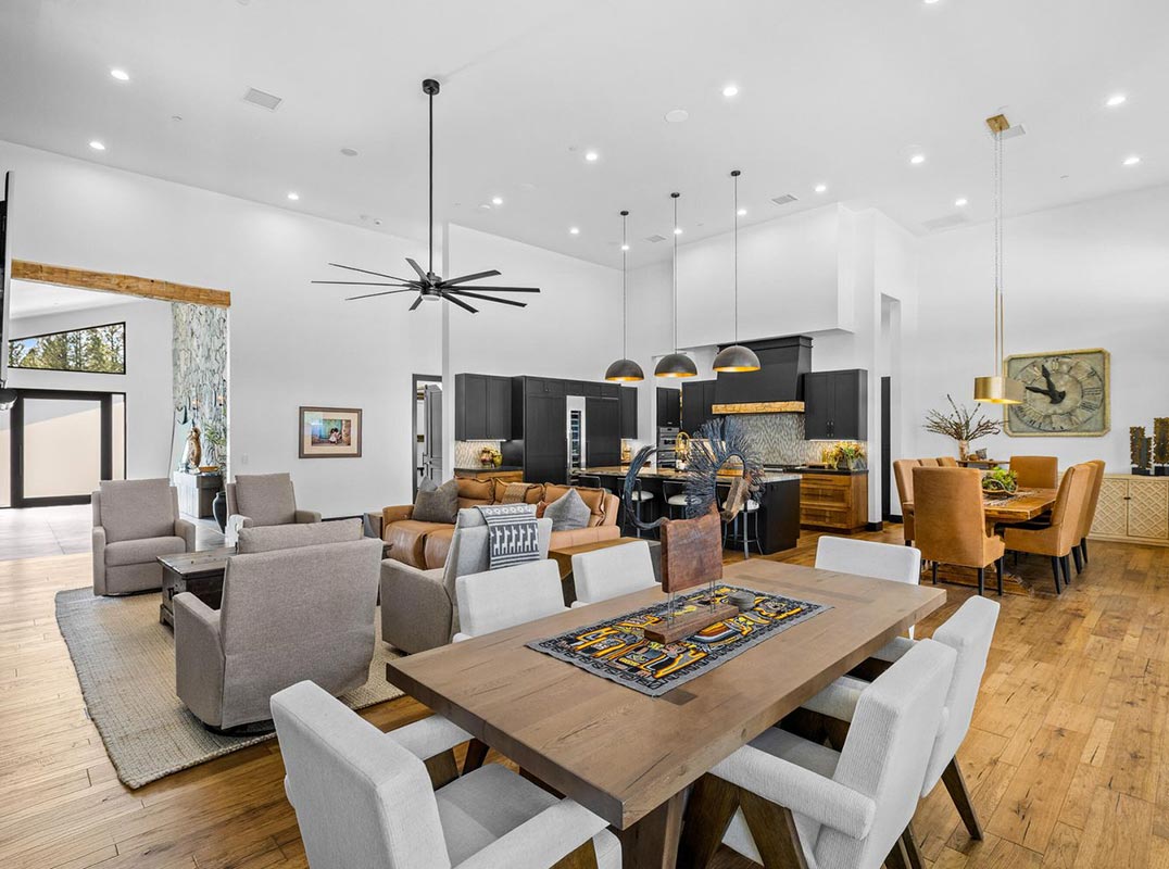 Welcome to 3468 Del Mar Court, Flagstaff - High Country modern featuring the most luxurious timeless finishes offered! Truly exceeds all standards of elegance, quality and function. Single level, four bedroom/four bath creates mountain living luxury throughout with soaring walls of windows, stone fireplace surround while creating an intimate mountain sophistication. Hard surfaces with edgy backsplash, Thermador appliances, scullery kitchen, heated bathroom floors, top of the industry lighting/camera and av systems, three ensuites (one primary) and a bunk room to capture all family enjoyment throughout all seasons. Back patio captures privacy, large entertainment area, hot tub under covered patio with heaters. This home is designed for lifestyle enjoyment. Electronic window coverings throughout. Upgraded bidet/toilet at master. Three car garage finished with epoxy floors and built in cabinets, you have never seen a home of this quality and cleanliness! Some furniture available on separate bill of sale. Art does NOT convey. Membership is optional at the Pine Canyon Club. SINGLE LEVEL 4/4/3 with hot tub and privacy! Will wow your most particular buyer.