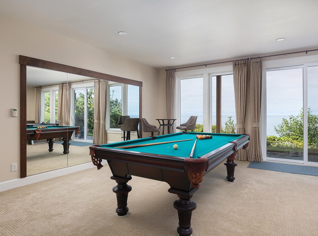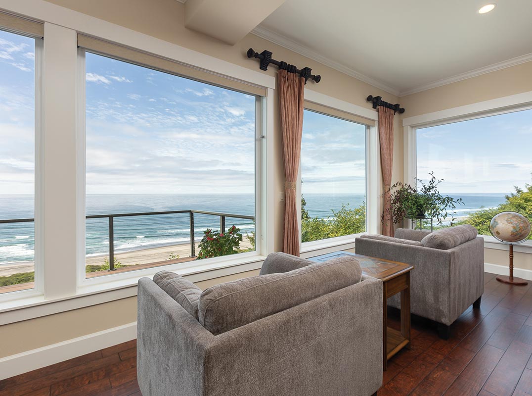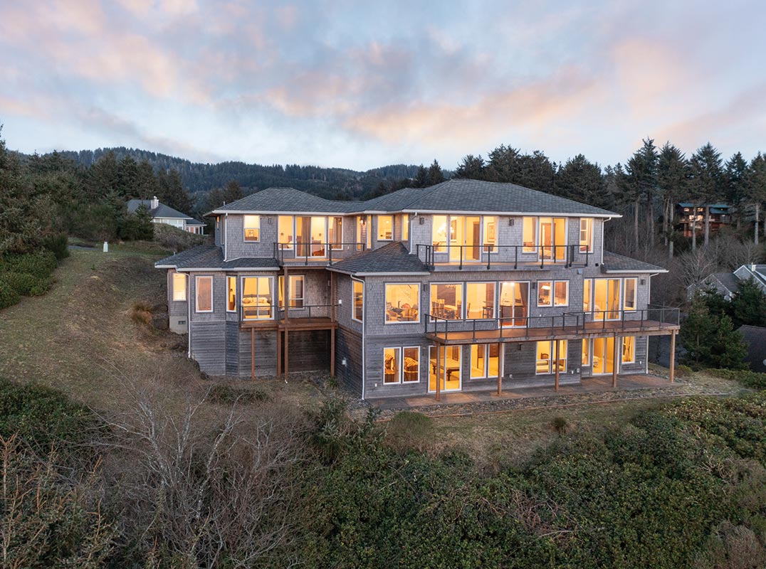 Commanding one of the most dramatic vantage points on the Oregon Coast, this Sahhali Shores residence offers sweeping ocean views, refined design, and unmatched livability. The added advantage of elevation, creates a perspective that is not only unique but truly hard to find. The open-concept main level showcases 10-foot ceilings, engineered hardwood floors with radiant in-floor heating on every level, and dramatic walls of glass that frame the coastline. The gourmet kitchen is equipped with an Italian dual range/oven, granite island, Insta-hot, prep counters, and a walk-in pantry designed for both intimate dinners and large gatherings. Multiple decks, including two covered, invite year-round enjoyment of the ever-changing coastline. Entertainment and relaxation abound with a family room featuring a custom wet bar, billiards, foosball, and air hockey, plus a dedicated media room with ping pong. A FIN sauna offers the perfect retreat after long beach walks or cool coastal evenings, while fireplaces on both the main and lower levels add warmth and character throughout.