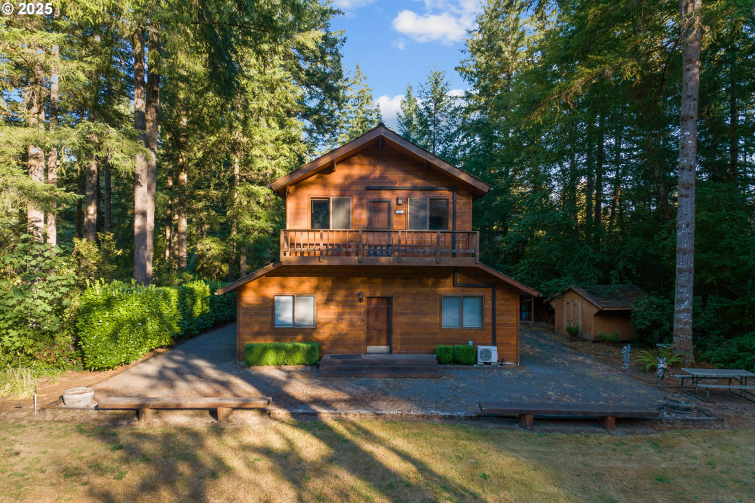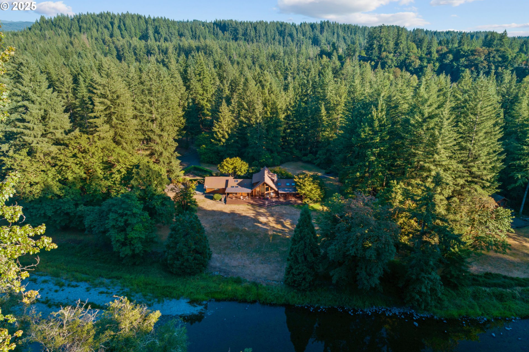 There is nothing comparable to this riverfront estate in all of Clark County. Set on twelve private acres across two tax parcels, this gated retreat offers nearly 1200 feet of pristine Lewis River frontage and an unmatched sense of natural beauty and seclusion. The primary residence is a stunning Lindal Cedar Home designed for mostly main level living. Soaring vaulted ceilings and a magnificent stone fireplace create a warm and inviting focal point, while walls of windows bring in abundant natural light and capture sweeping views of the river and surrounding evergreens. The layout flows seamlessly to an expansive covered deck, the ideal place to relax or entertain while overlooking the tranquil river setting. A separate guest house adds both comfort and versatility, featuring its own kitchen, family room, two bedrooms, and a three car garage. Perfect for extended family, friends, or multi-generational living, it allows guests to enjoy complete privacy while still being close to the main residence. For those who love outdoor adventure and recreation, the property includes a large shop designed to accommodate RVs, boats, or any number of vehicles and equipment. The wide doors and easy-access driveway make storing and maneuvering even the largest toys effortless. The grounds are just as impressive as the residences, with a blend of open meadows, mature forest, and riverside clearings that invite exploration. Whether fishing from the banks, launching a kayak, or simply enjoying the quiet beauty of nature, this property embodies the lifestyle of the Pacific Northwest. Rarely does a legacy property like this become available. With its striking architecture, unrivaled river frontage, and thoughtful amenities for both living and recreation, this estate is more than a home. It is a destination.