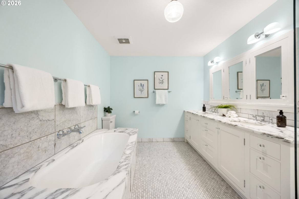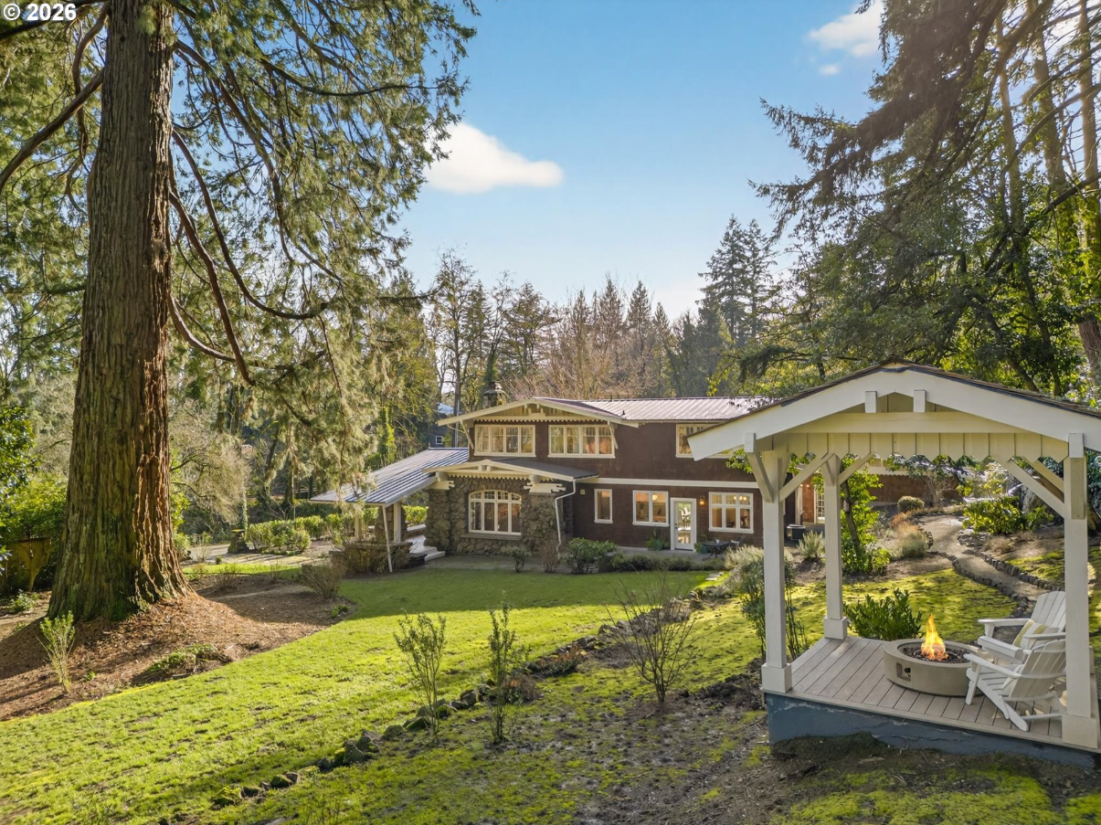 A masterful restoration by McCulloch Construction, known for having an obsession with excellence. A studs out restoration with all new systems in 2020. Newly remodeled master suite in 2026! The Emma Austin House is poetic architecture triumphantly restored by Portland’s remodel experts, McCulloch Design Build, (with about 2,000 skillful projects to their credit). Gracious open floor plan ideal for entertaining on the main floor, with expansive windows that frame stunning views of the 1+ acre property showcasing mature rose gardens, a fairy-tale gazebo, artistic fountain, charming waterfall and majestic redwood. Inside, light pours through thoughtfully placed windows and restored fixtures, illuminating elegant hardwood floors and a series of spaces designed to feel both refined and welcoming. A private office with custom built-ins offers a quiet retreat, while the living room is anchored by a dramatic stone-and-brick fireplace that grounds the home with warmth and presence. The chef’s kitchen, blends timeless materials with modern functionality, highlighting marble countertops, a generous island, and premium appliances, seamlessly integrated for everyday ease and elevated entertaining, opening gracefully to a formal dining room perfectly suited for memorable gatherings. Upstairs, the primary suite unfolds as a serene sanctuary, complete with its own fireplace and a spa-inspired bath featuring heated floors, marble finishes, a glass-enclosed shower, a walk-in closet, and a soaking tub positioned to invite relaxation while overlooking the peaceful, garden-like setting. While the lower level reveals a private wine cellar with custom built-ins, an intimate space designed for both collection and conversation. Ideally located within walking distance to downtown Lake Oswego and the trails of Tryon Creek.
